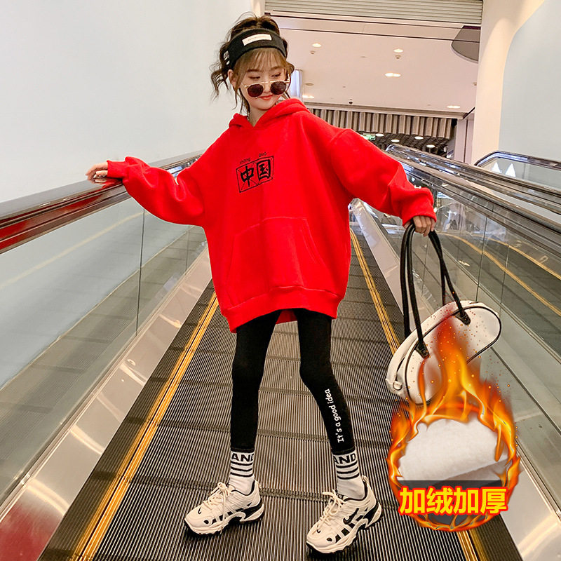 Girl's gush clothing red net red girl clothes 2022 new Chinese New Year autumn and winter Korean version big child bursting with a velvet