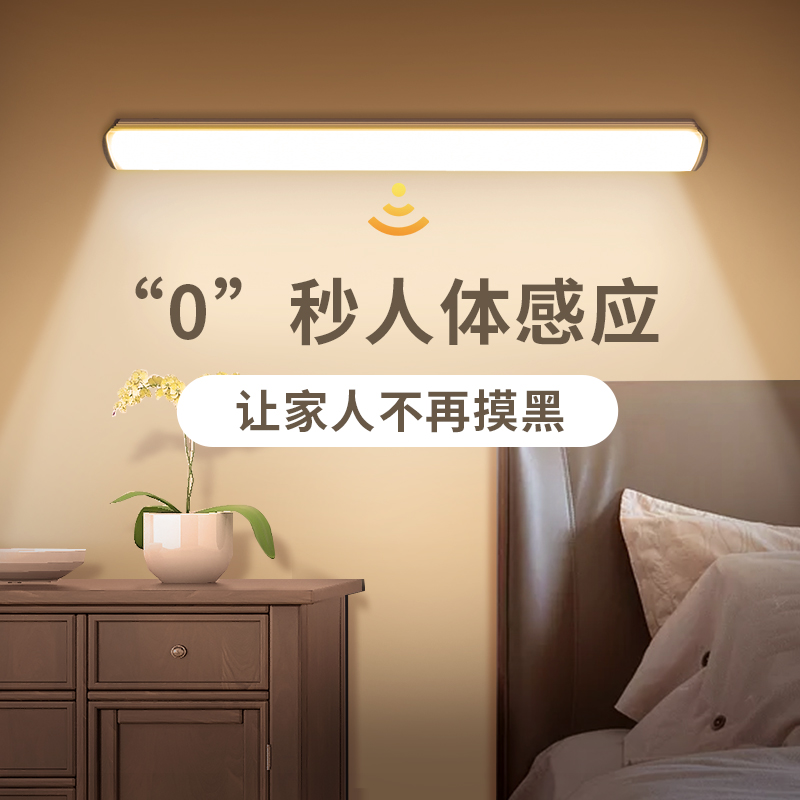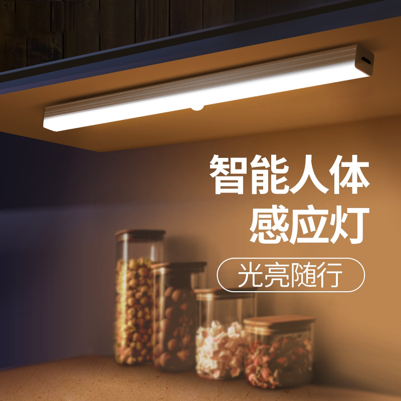 Human intelligent induction lamp with long wardrobe shoe cabinet wireless self-adhesive kitchen charging TYPE LED magnetic suction integral cabinet light