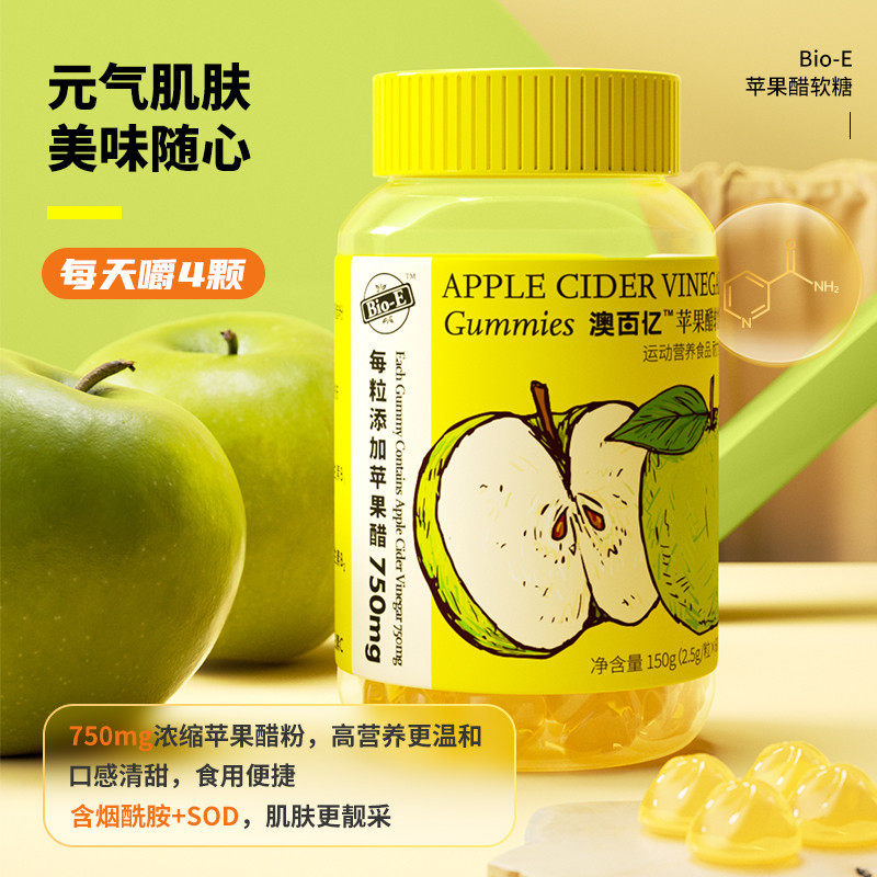 bioe apple cider vinegar gummies 60 vitamin C gummies add nicotinamide VCVB adult vitamin C chewing sugar enzyme