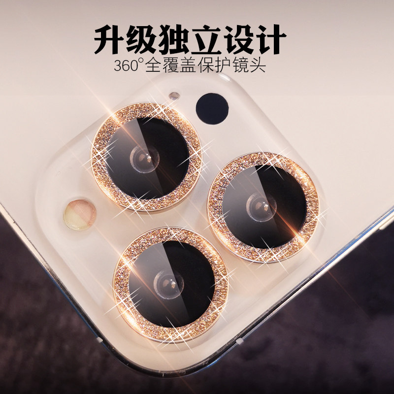 Suitable for Apple 13promax lens film iphone13 inlaid drilling lens ring gold flash powder camera 13pro covering female 13mini water drill mobile phone rear lens sticker camera po