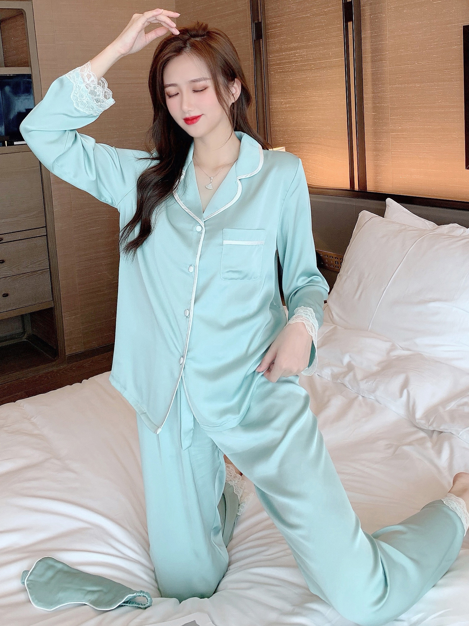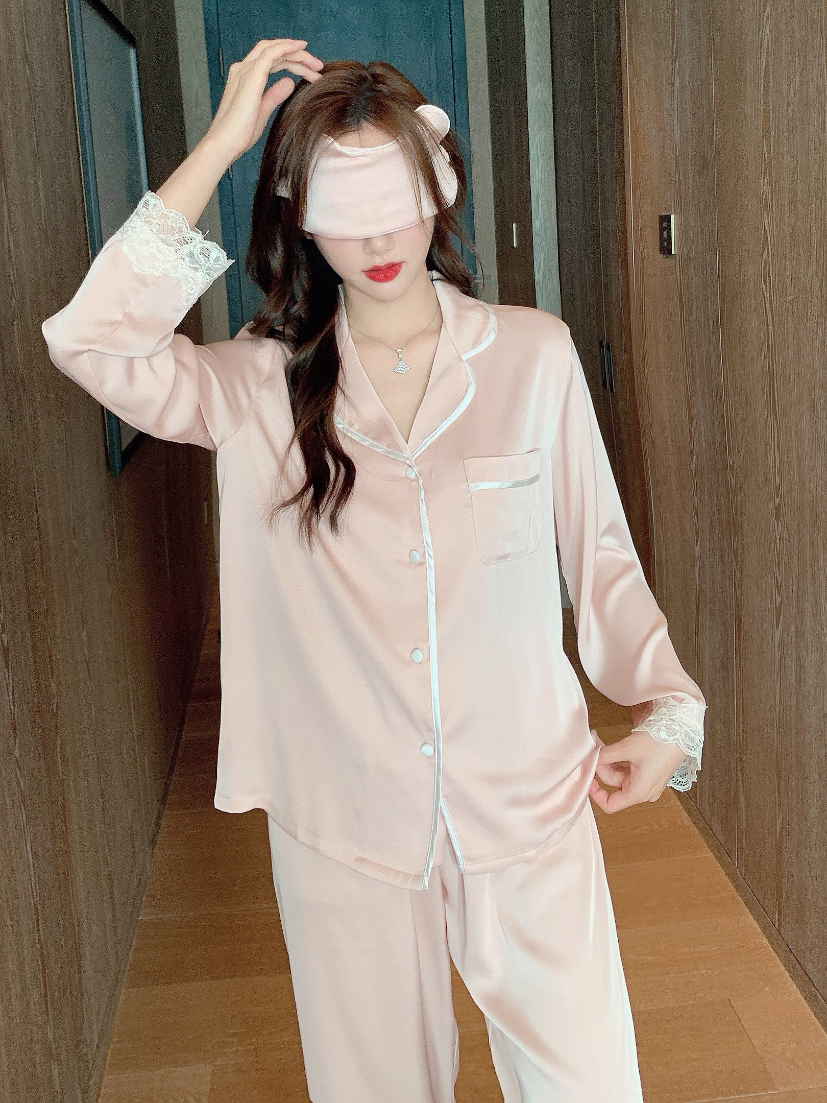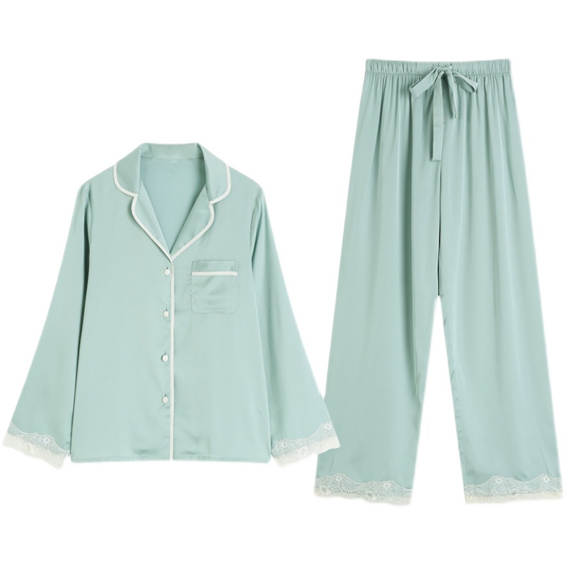 MAJE MANTAS silk pajamas women's spring and autumn 2021 new long-sleeved ice silk homewear two-piece suit