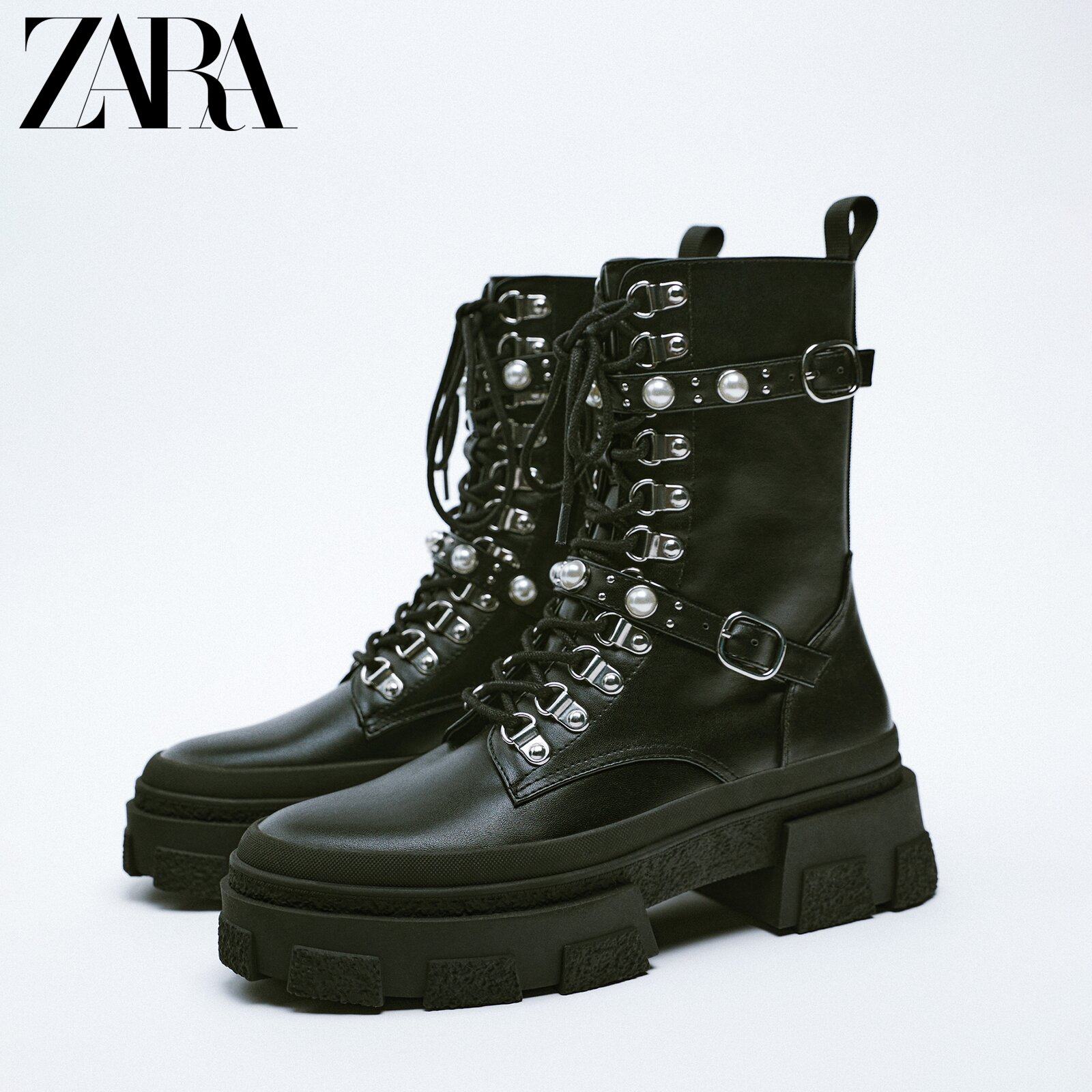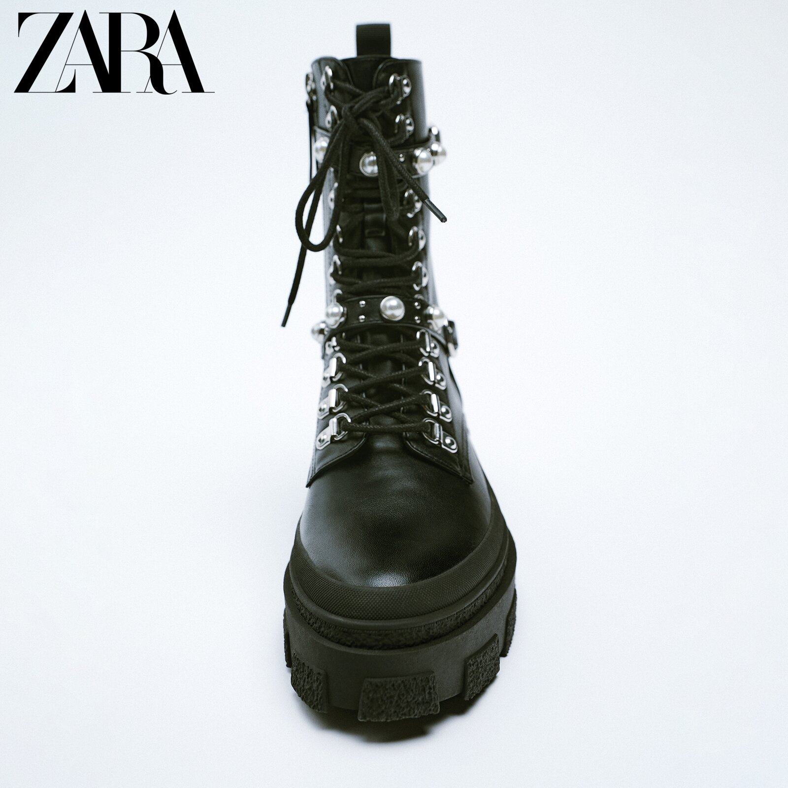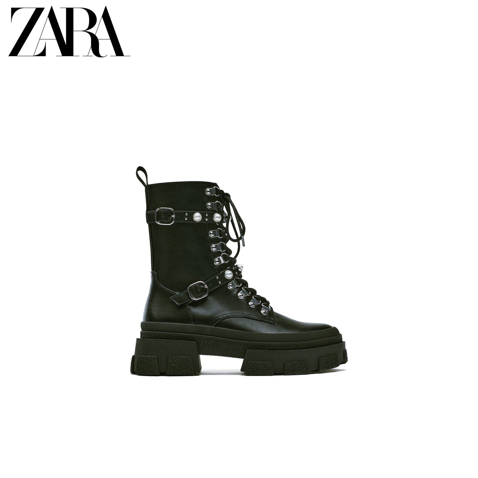 ZARA Early Spring New Products Women's Shoes Black Balls Accessories Thick Underlann Gear Shoes Martin boots 2867810040