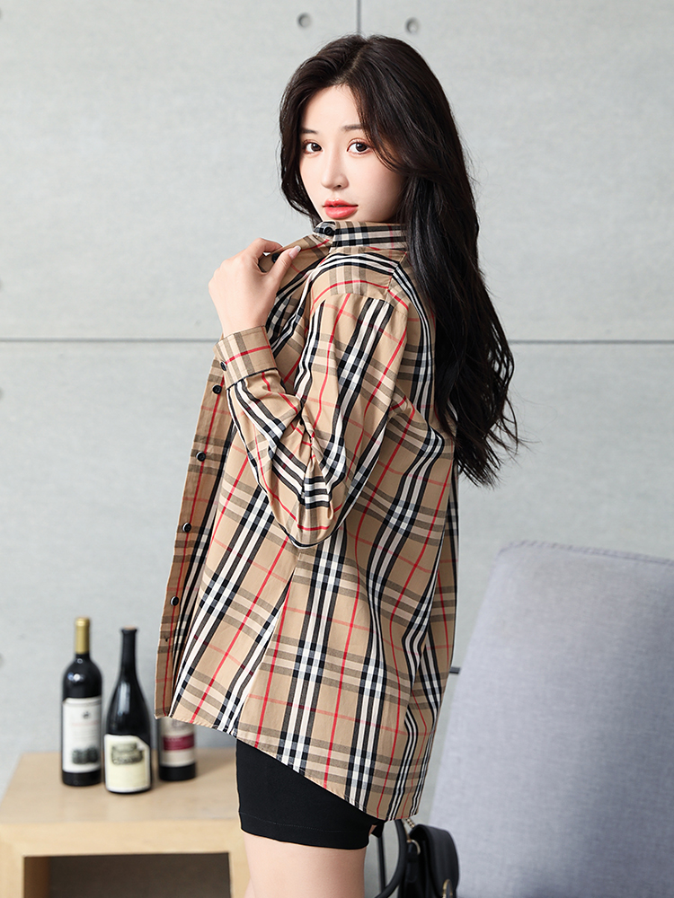 Spring Autumn Season Classic Plaid Shirt Woman Long Sleeve High-end Pure Cotton Large Size Korean Version slim fit card in its color medium long version shirt