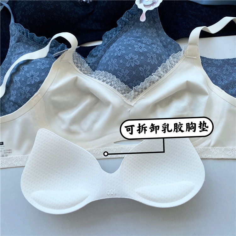 Japanese Diane Fen original 3D latex no steel ring removable chest pad seamless lace jacquard sexy underwear