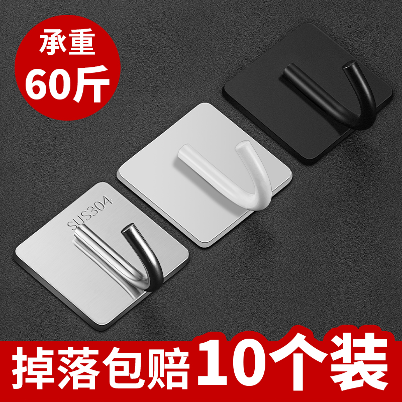 Stainless steel hook 304 viscose clothes wall hook kitchen wall bearing bathroom clothes sticking hook free from punching-Taobao