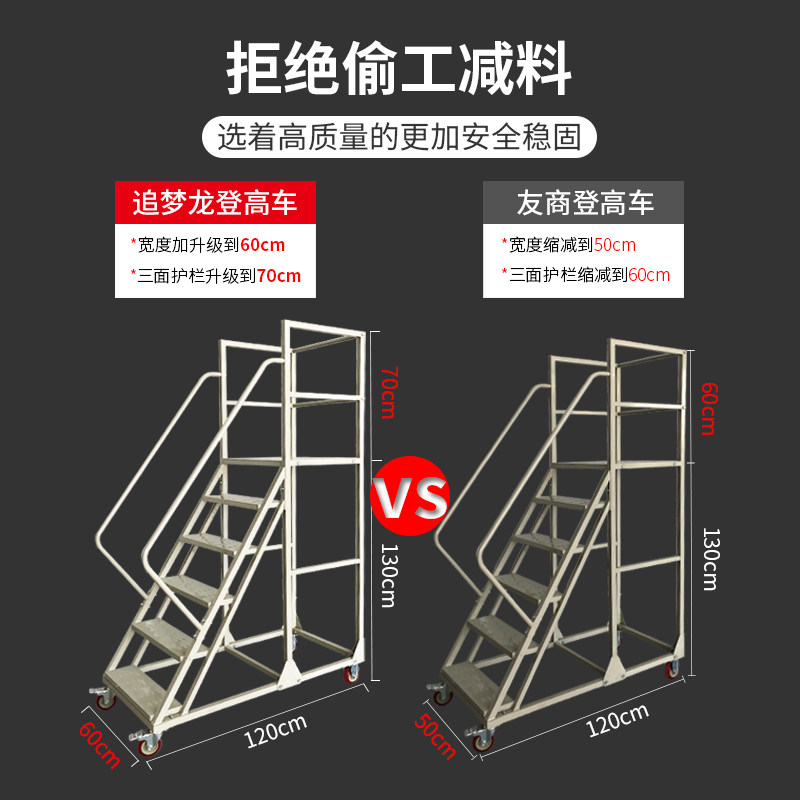 Supermarket warehouse warehouse lift car detachable tally pick-up ladder mute wheel movable platform climbing ladder