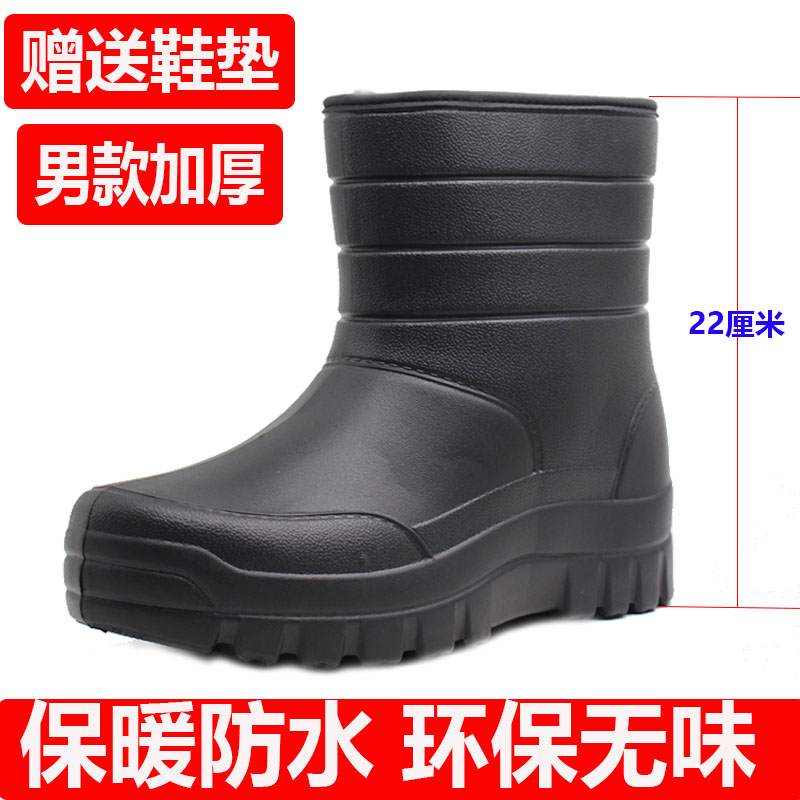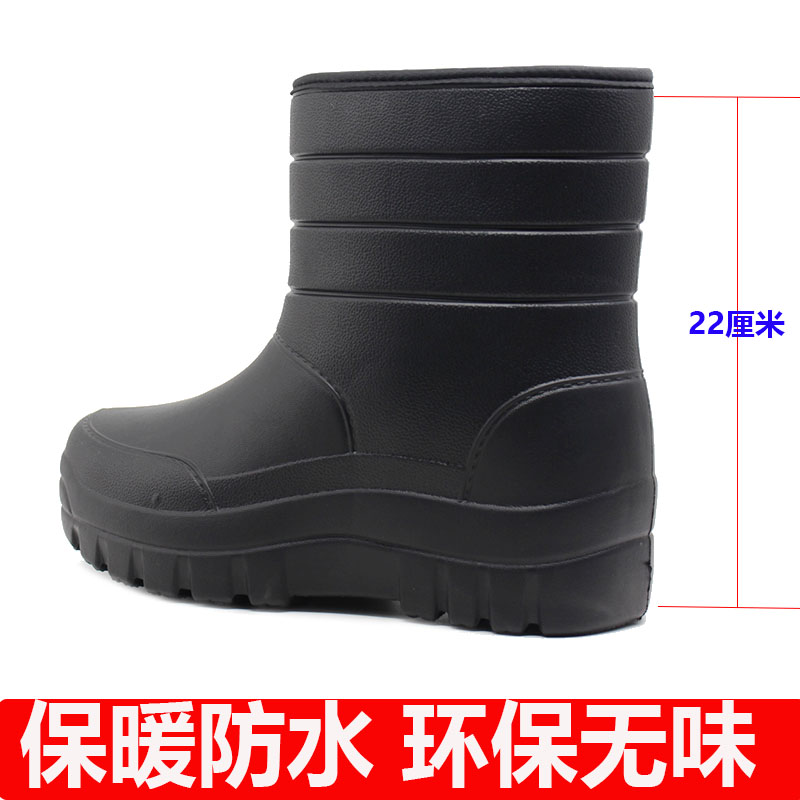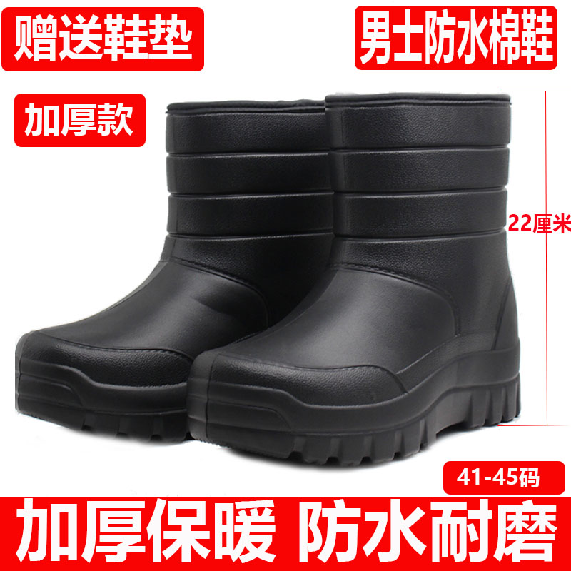 Winter EVA Waterproof Cotton Shoes Plus Suede Male Forming Car Wash Foam Snowy Boots Rain Shoes Thick Bottom Non-slip Wear-Taobao