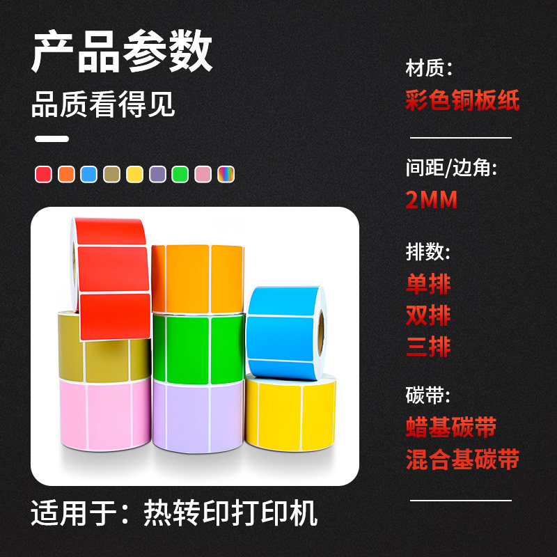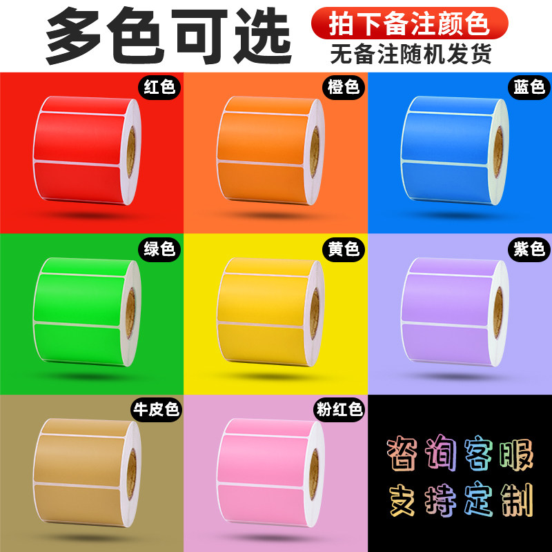 Color copper label label label printing paper copper plate label 30 40 50 60 70 red, yellow and blue powder purple orange kraft tag label carbon code printer custom logo