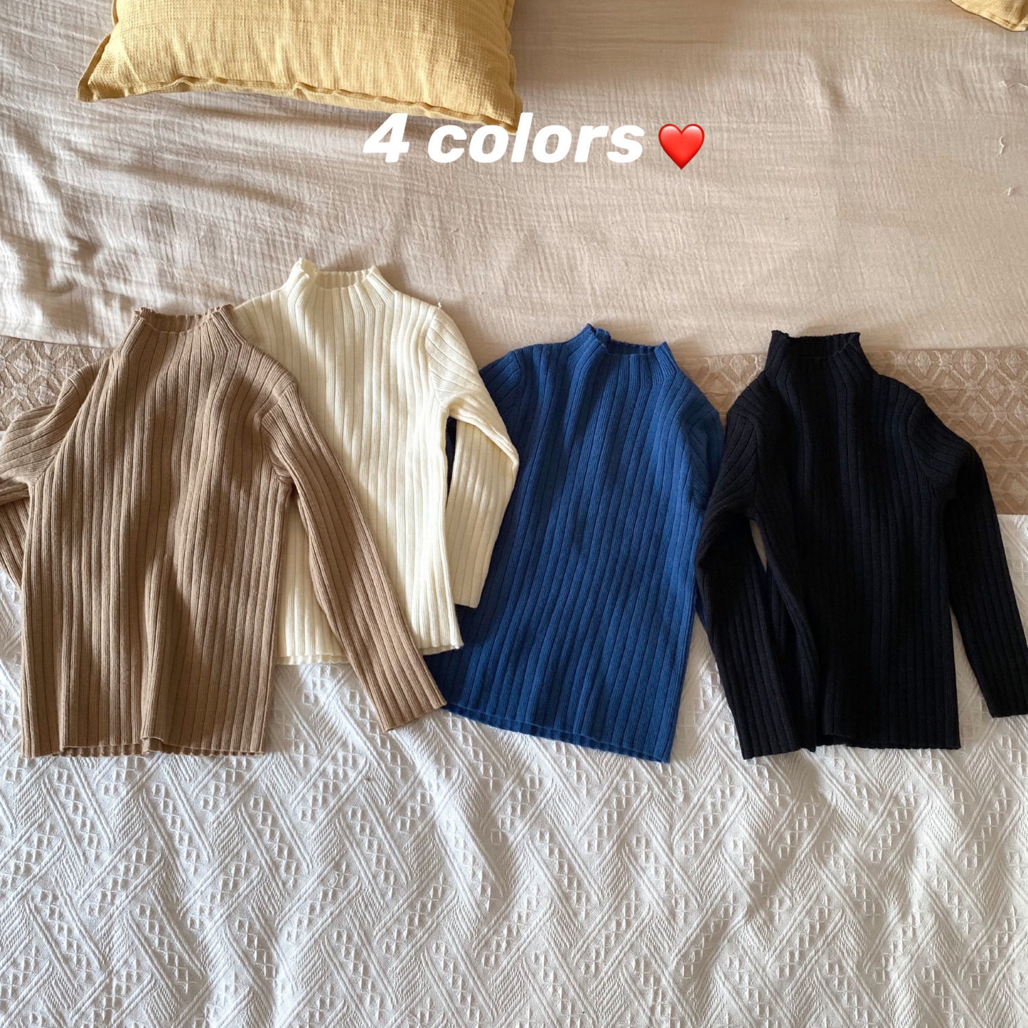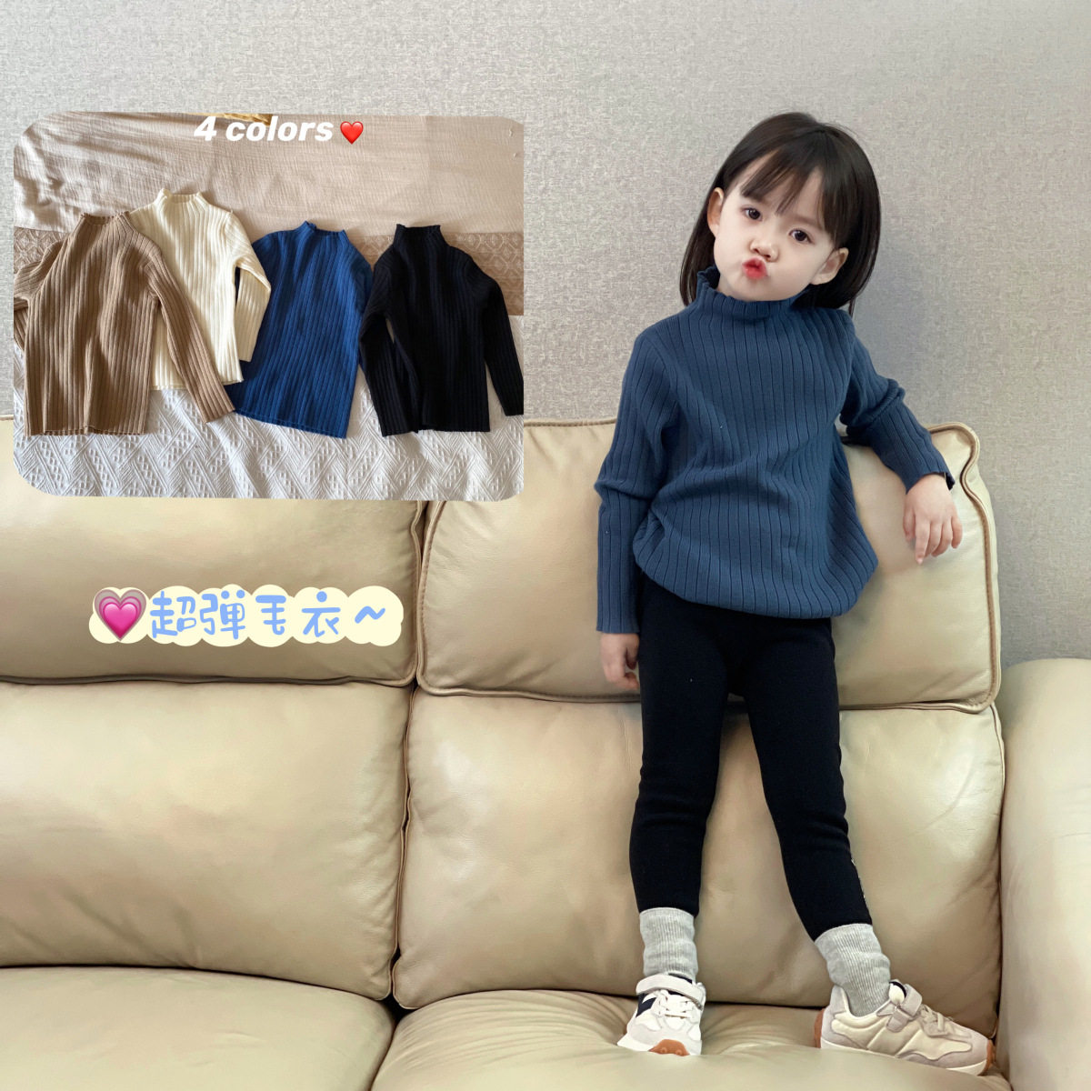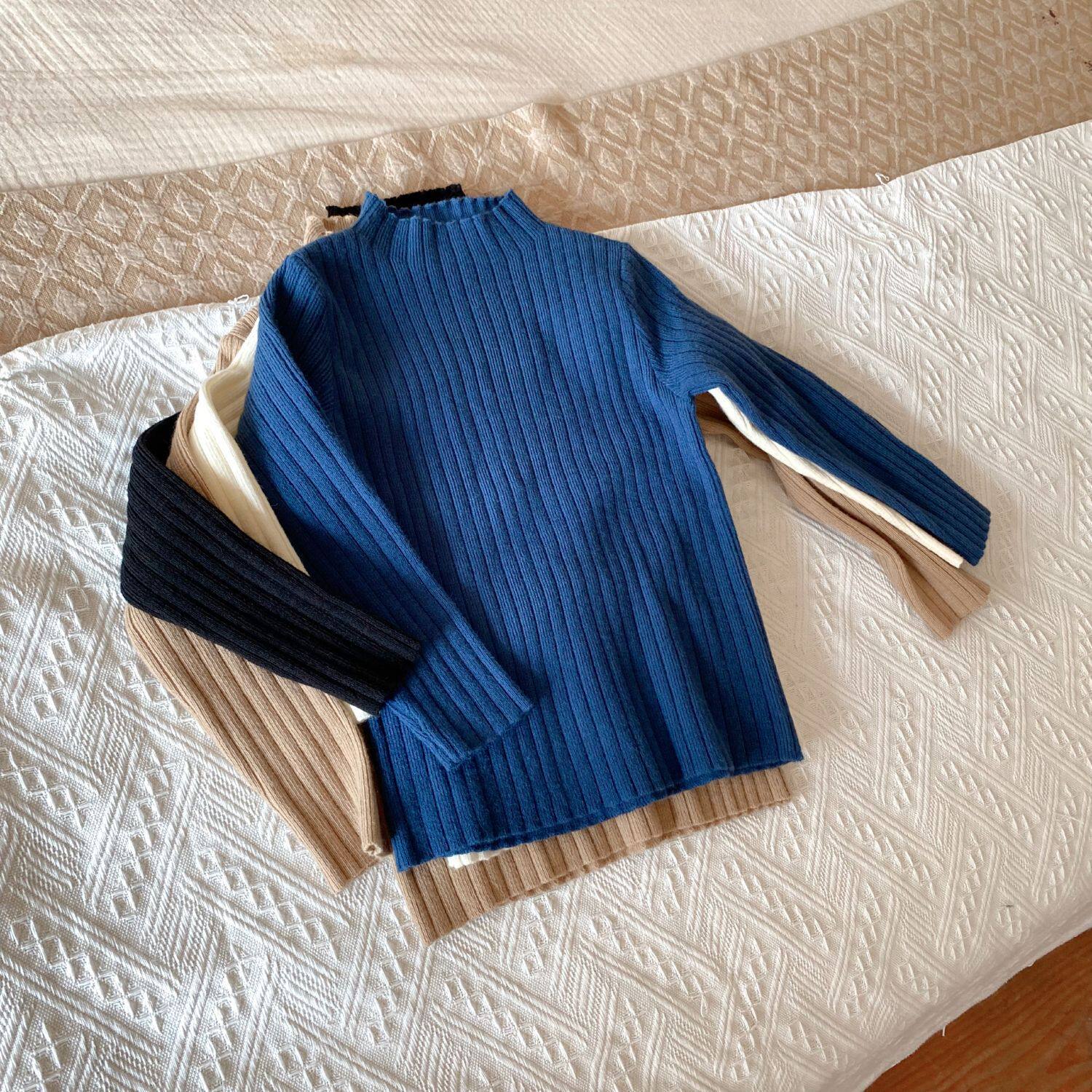 Girls' Bottoming Sweater Half Turtleneck Autumn and Winter Thickening Korean Version Children's Western Style Slim Top Baby All-match Knit Sweater