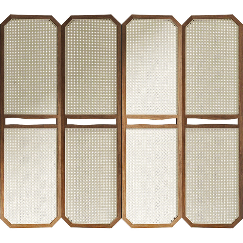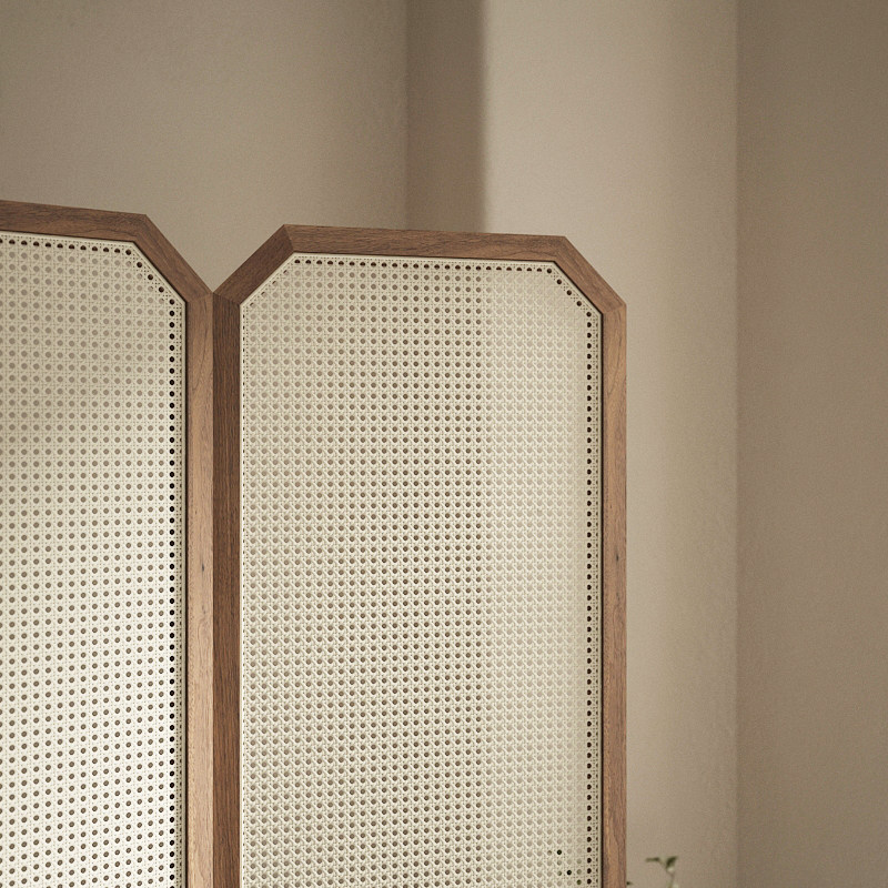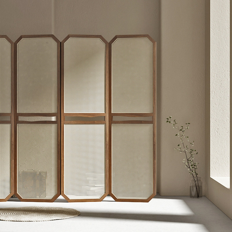 New Chinese style solid wood folding mobile folding screen simple modern rattan screen partition living room porch homestay office