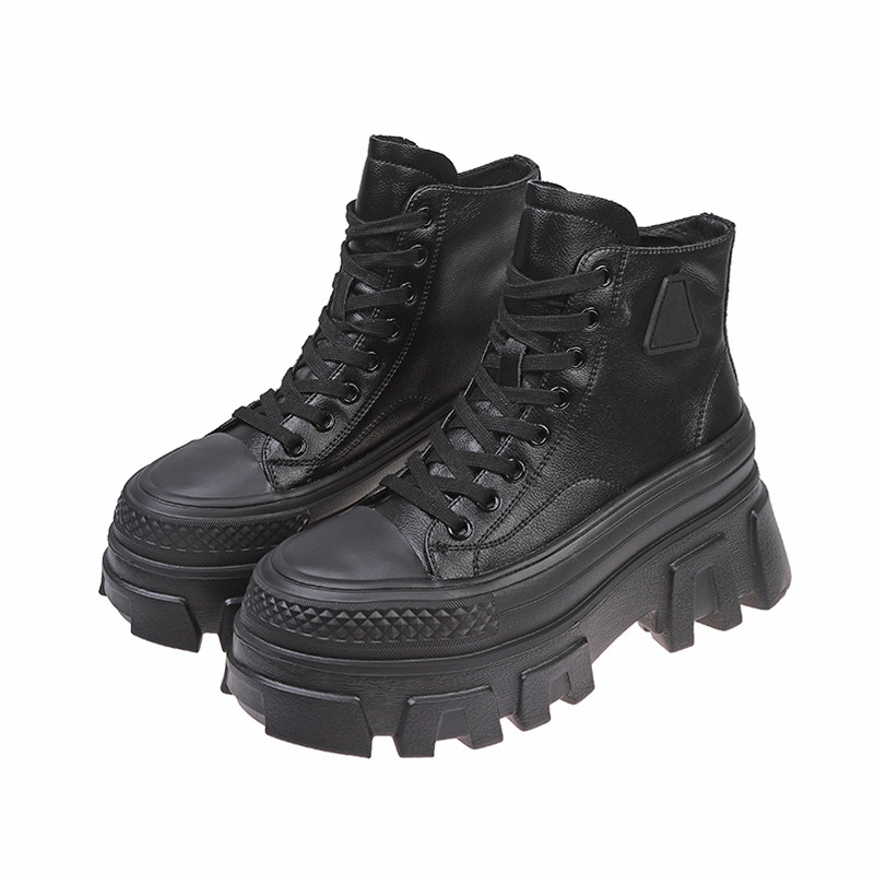Martin boots women's 2022 spring new European station black leather thick bottom heightening British style short boots ins trendy women