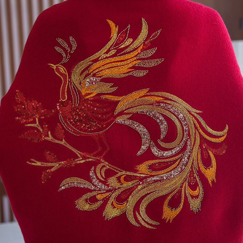 Great red(Phoenix embroidery) Day red(Phoenix embroidery) Black(bird embroidery) Upper green (Phoenix embroidery) Black (bird embroidery) Black (Phoenix embroidery) Great red