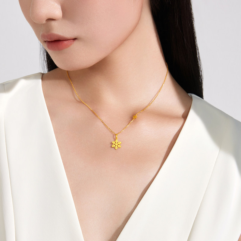 Chow Tai Fook Sparkling Snowflake Pure Gold Gold Pendant Necklace Women's Price EOF553