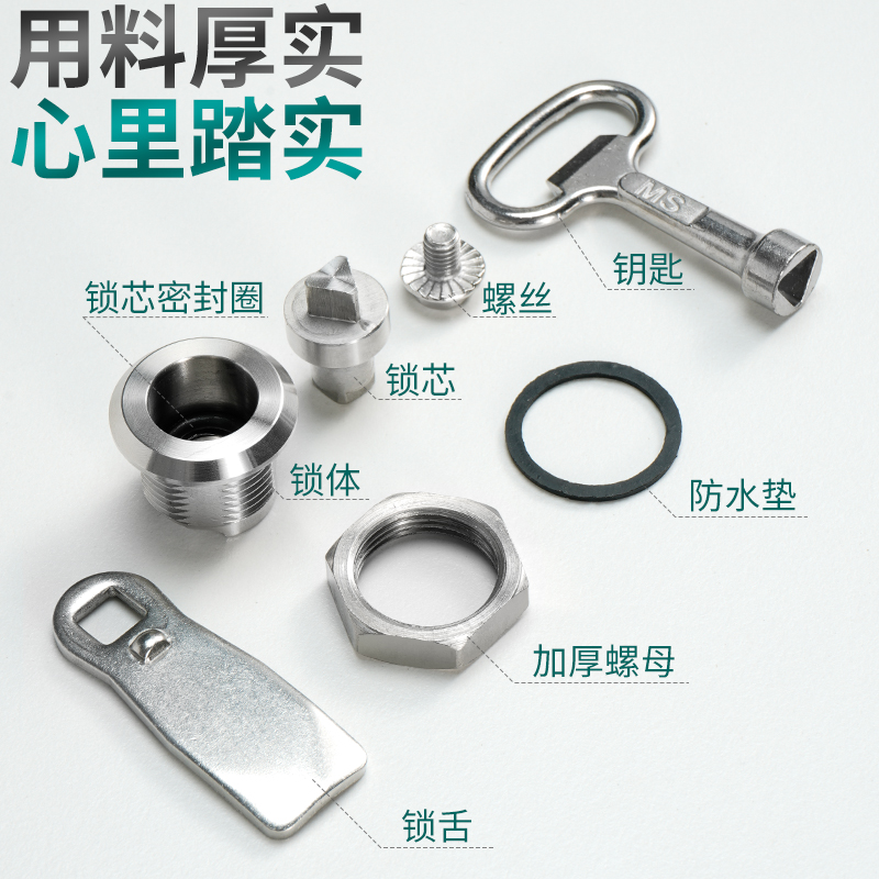 Stainless steel turn tongue elevator triangle lock MS705 one-word four-corner outdoor distribution box cabinet with key lock cylinder 714