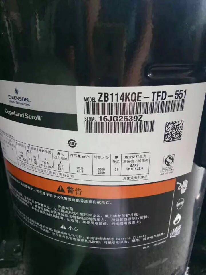 ZB114KQ-TFD-551 ZB114KQ-TFD-551 ZB114KQE-TFD-551 original fitting brand new Emerson Round of 15 compressors
