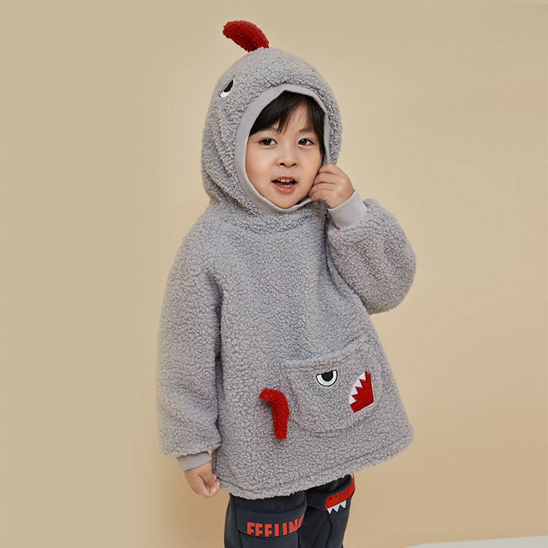 Boy plus jacket autumn and winter children lamb plug cap tops baby one body plug thicker warm hat shirt