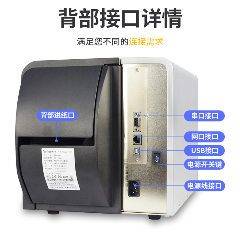 Jiabo CP-CH431 Industrial Grade Barcode Printer Factory Logistics Express Electronic Surface Single Barcode Printer QR Code Ticket Qualification Certificate Thermal Label Carbon Belt Coated Paper Self-adhesive Printing