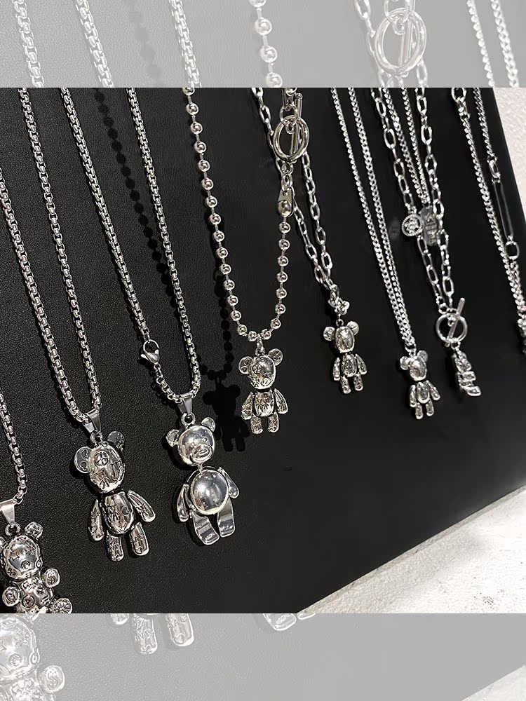 Double layer full diamond bear necklace violent bear necklace big fat bear necklace double layer bear OT chain long bear necklace short bear OT chain (rotatable limbs) short bear necklace (rotatable limbs) short