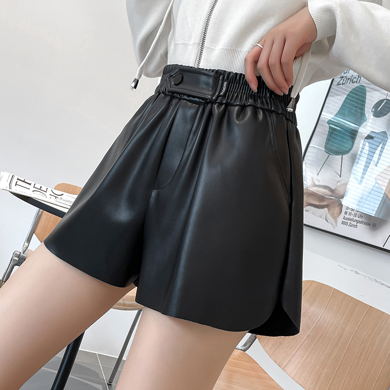 Small elastic waist leather shorts female 2022 new hot style autumn and winter genuine leather A-line loose wide-leg pants boot pants - Taobao