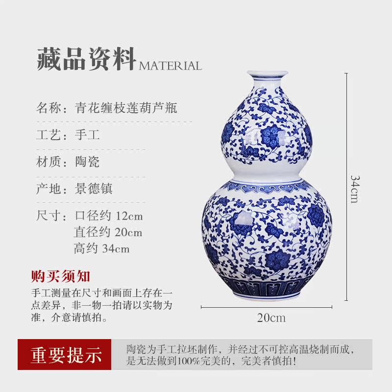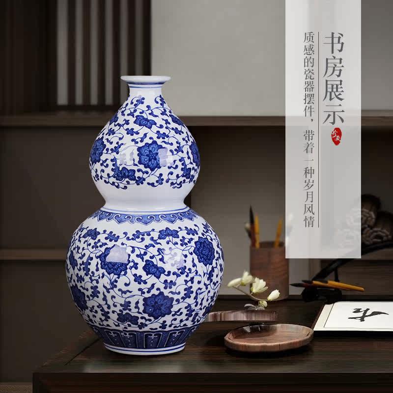 Jingdezhen Ceramic vase gourd Town Residence Residence Swing Pieces Qinghua Porcelain Antique New Chinese Style Home Living Room Bedroom Adornment