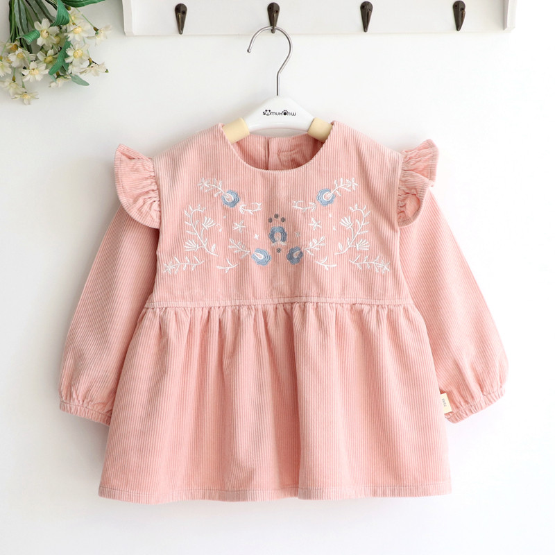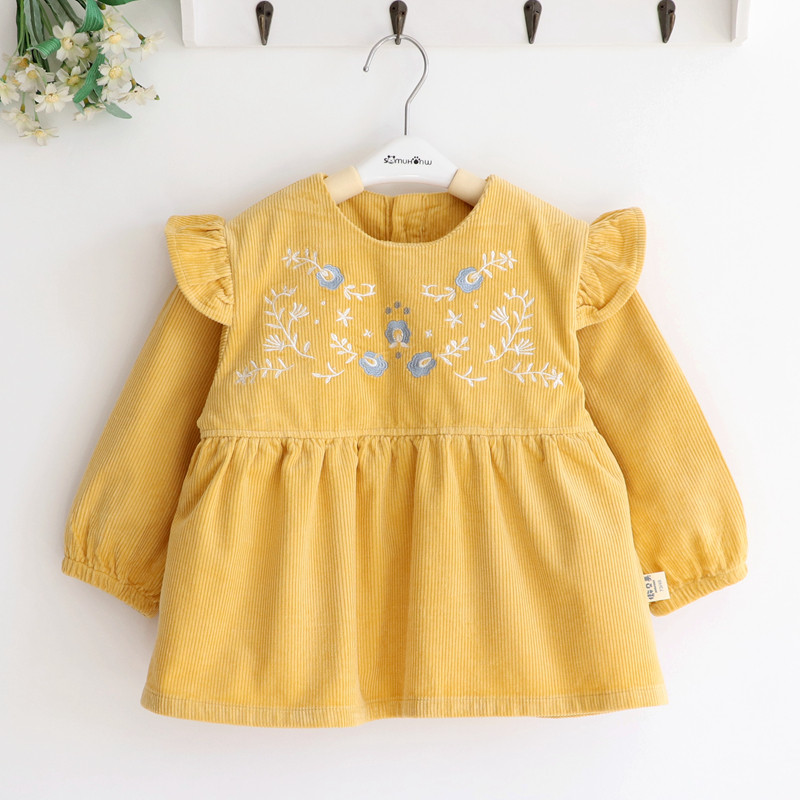 French embroidery corduroy girl girl baby waterproof coverall girl baby reverse dressing 73-130