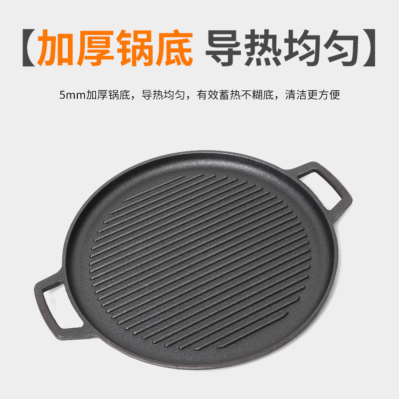Thickened Cast Iron Striped Grill Pan Frying Pan-oven Domestic steak frying pan Boiler Iron Plate Burning Pan Commercial