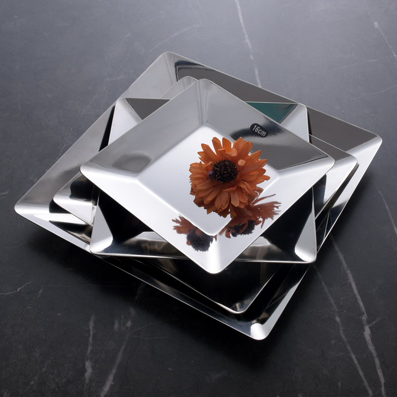 Household stainless steel plate thickened plate western plate dessert plate breakfast plate fruit and vegetable storage plate square plate