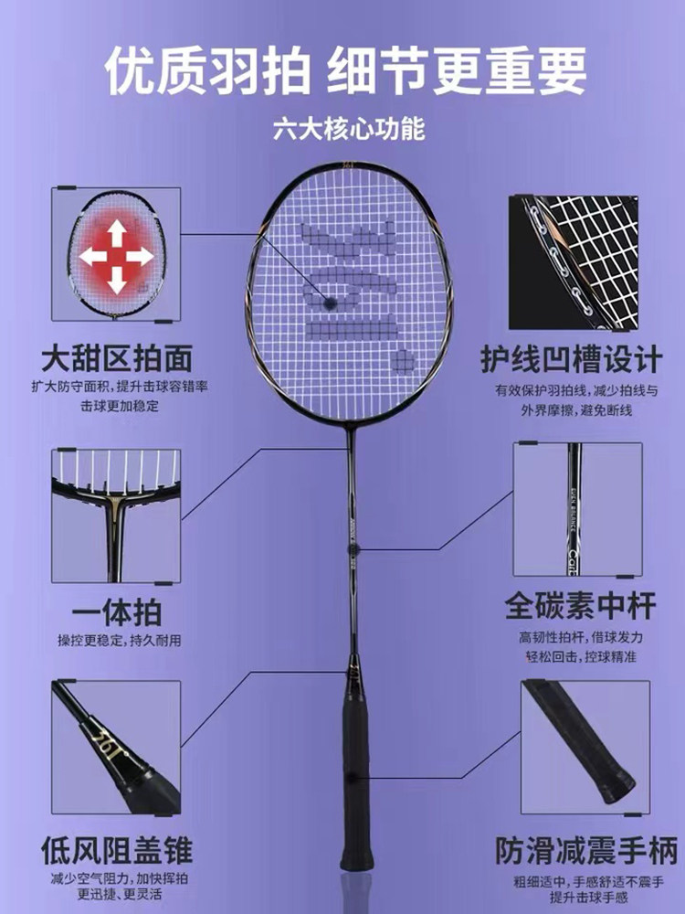 361° Professional Badminton Racket Resistant Carbon High Elasticity Offensive and Defense Adult High-value Student Aluminum Alloy Ultra-light