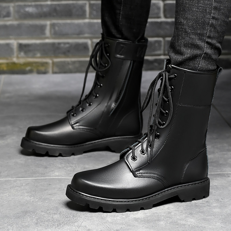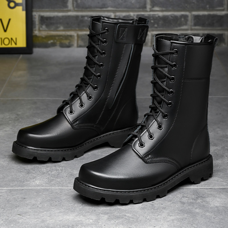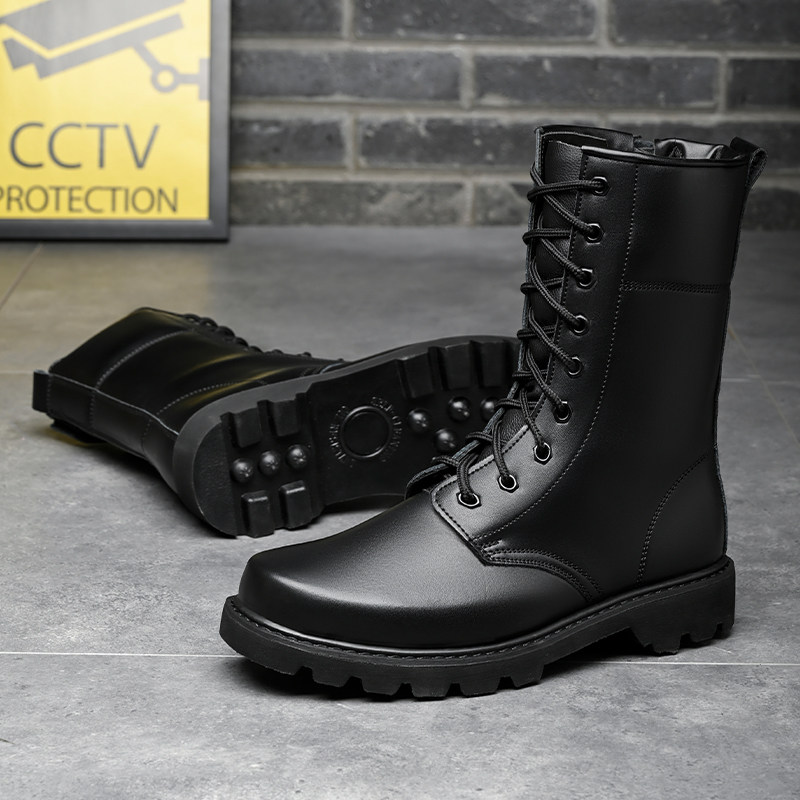 Fight Boots Men's Leather Boots Combat Men Boots High Cylinder Shoes Wool Boots Security Boots Land Tactical Boots Autumn Winter Outdoor for training boots