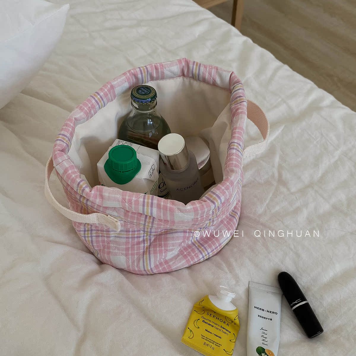 Odorless clear cotton plaid containing bucket Candy Color Large Capacity Cosmetic Snacks storage Inclusions