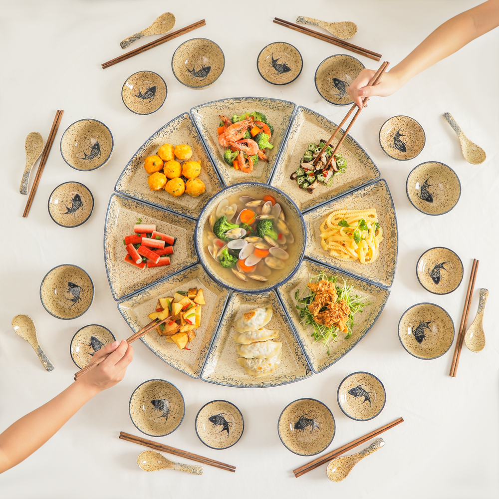 Fish fun platter (8 pieces) Fish fun platter (10 pieces) Fish fun platter (12 pieces) Fish fun platter 9 pieces (with soup bowl) Fish fun platter 9 pieces (with accessories)