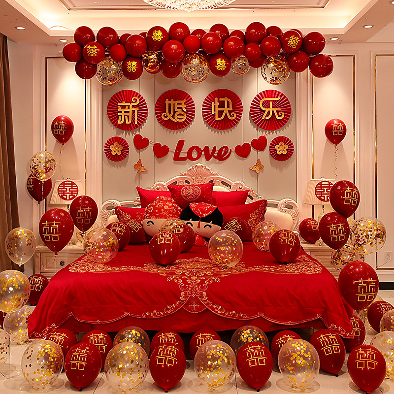 The Canon Day Song-fan Wedding House Suit Ginka Newlywed Happy-Balloon Wedding House Suit Rose Gold New Wedding Happy Luxury style Happy Curtain-New Wedding Happy-Balloon Wedding Room Package I-LOVE-Y