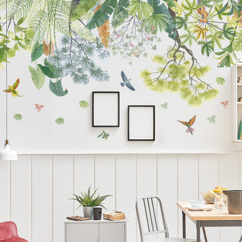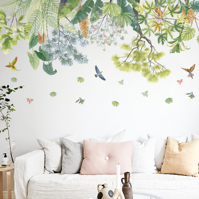 Green Planting Wall Sticker Painting Fresh Nordic Leaf Top Corner Skirting Board Decoration Waterproof Self-Glued Bedroom Cozy Bedside Dorm Room