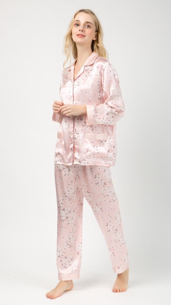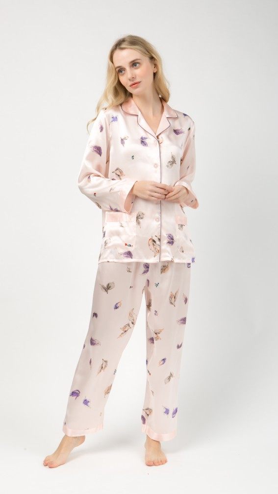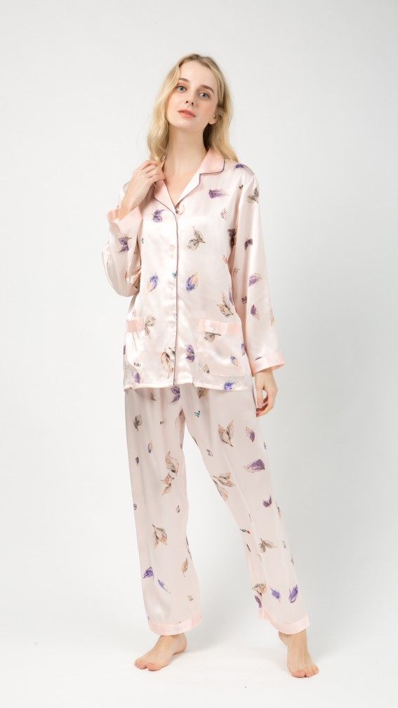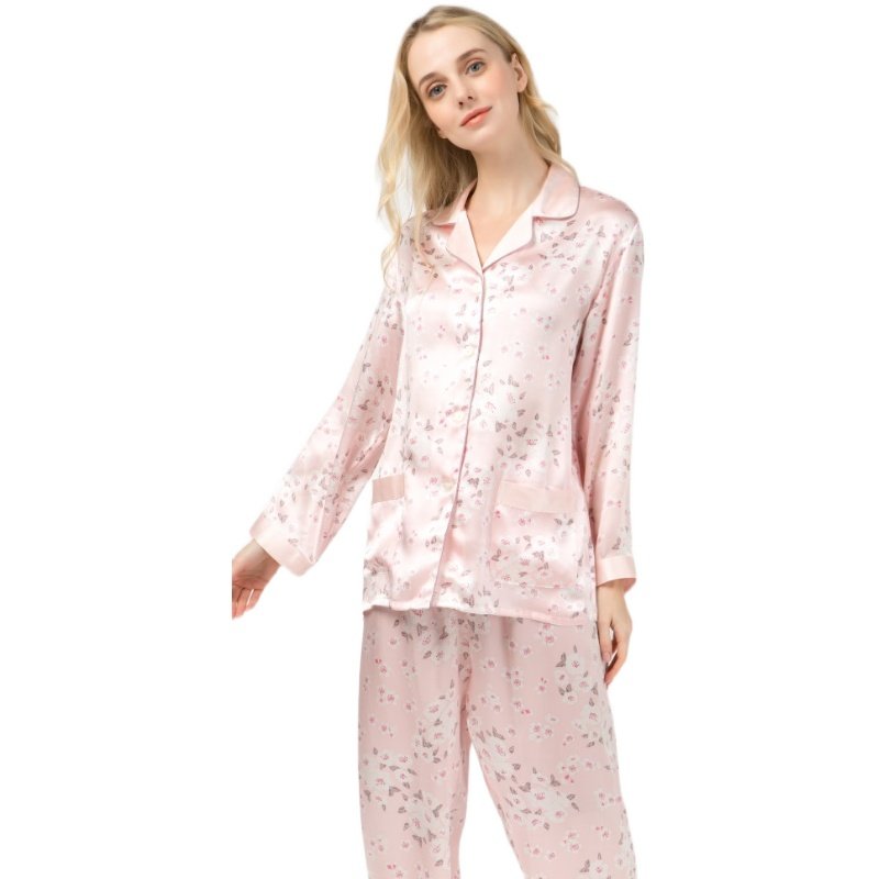 Suzhou silk silk pajamas 100% mulberry silk women's printed long-sleeved two-piece autumn and winter new home clothes