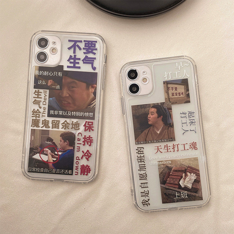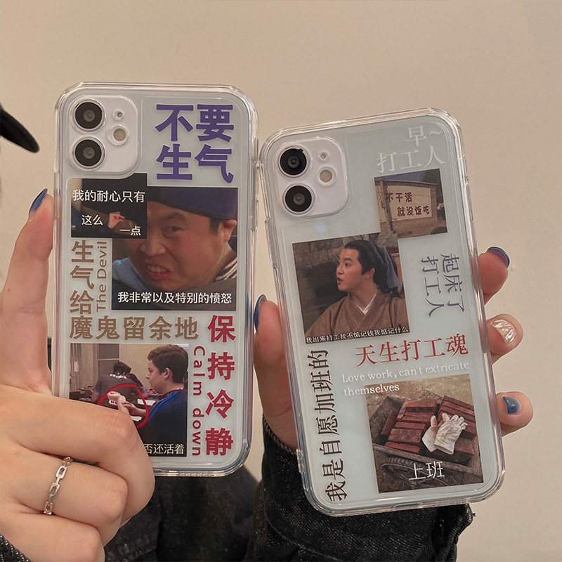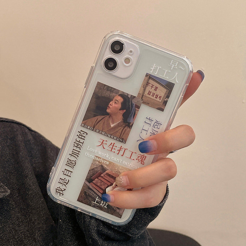 Fun Beating Workers Literal Illustrations Apply iPhone11 Apple 12promax Mobile Phone Protection Shell 13 X Xsxr Female Xsmax Anti-Fall 7 8plus Silicon