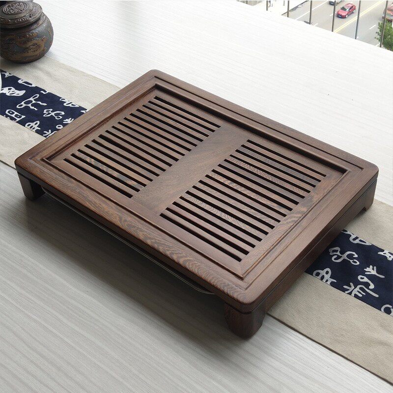 Home Delicate Tea Tray Solid Wood Chicken Wings Wood Drain Type Tea Table Minima High-end Tea Sea Drawer Teatai Tea Terrace