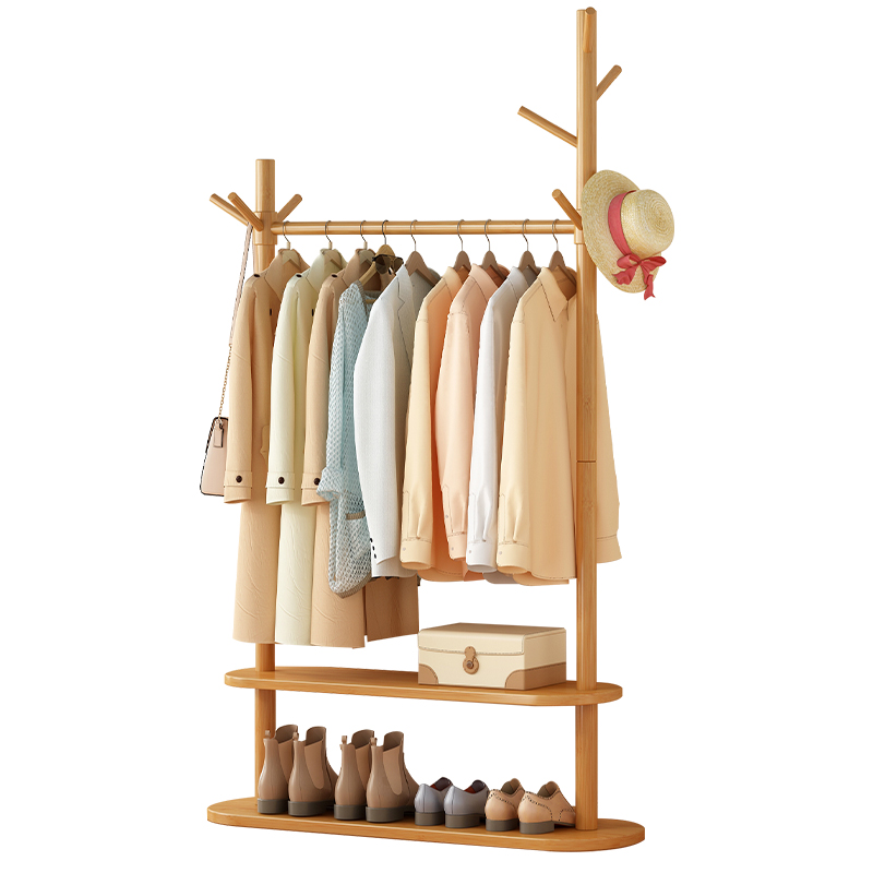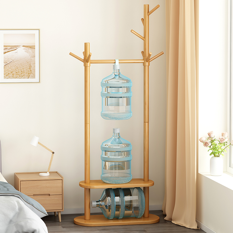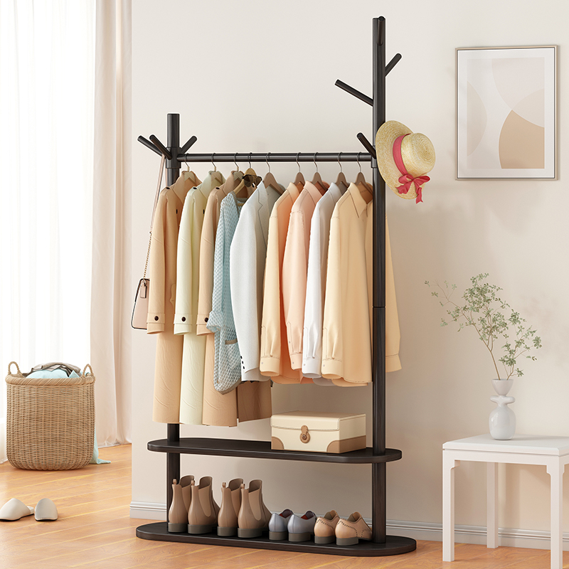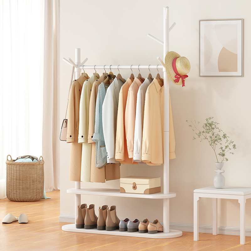 Coat rack floor bedroom home indoor solid wood rack double rod living room corner simple overnight clothes rack
