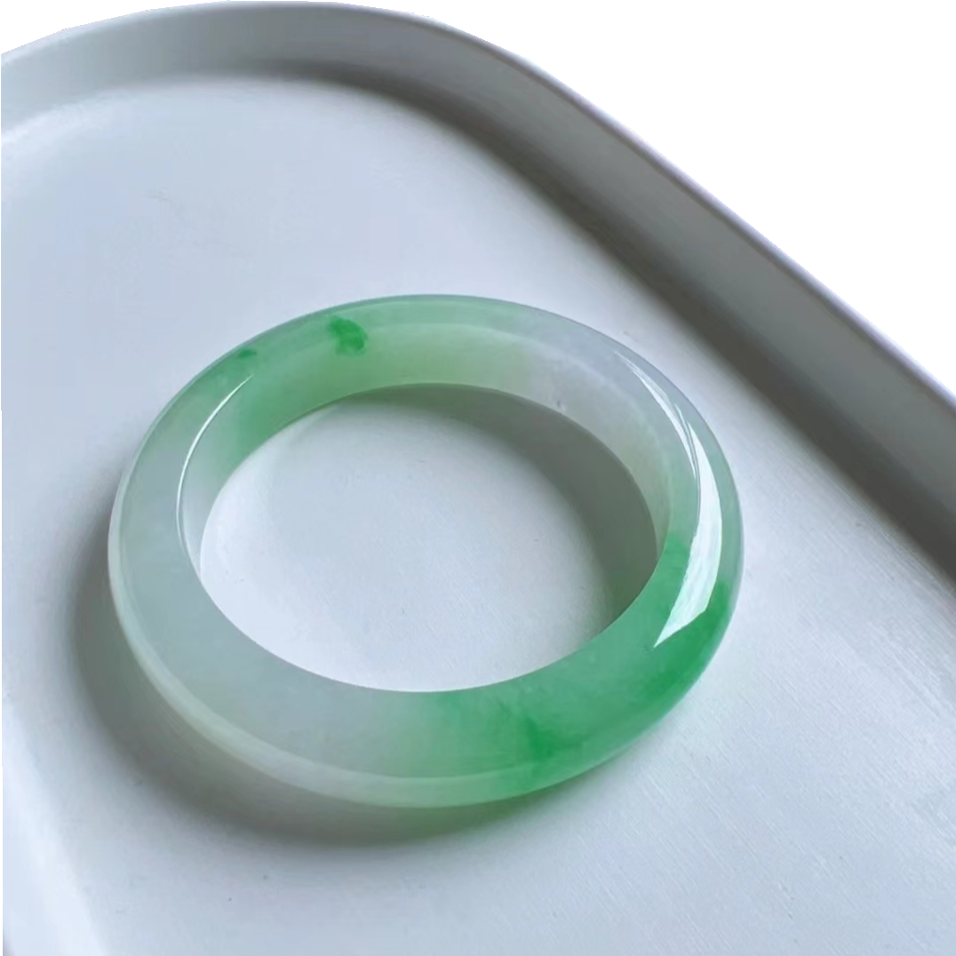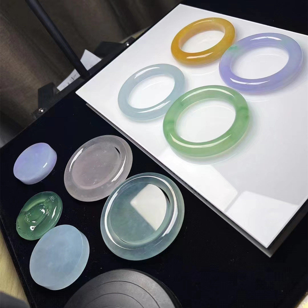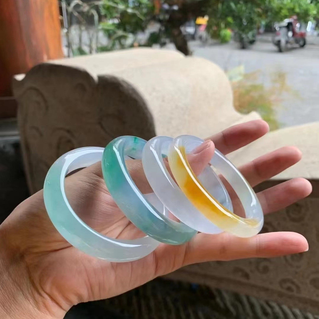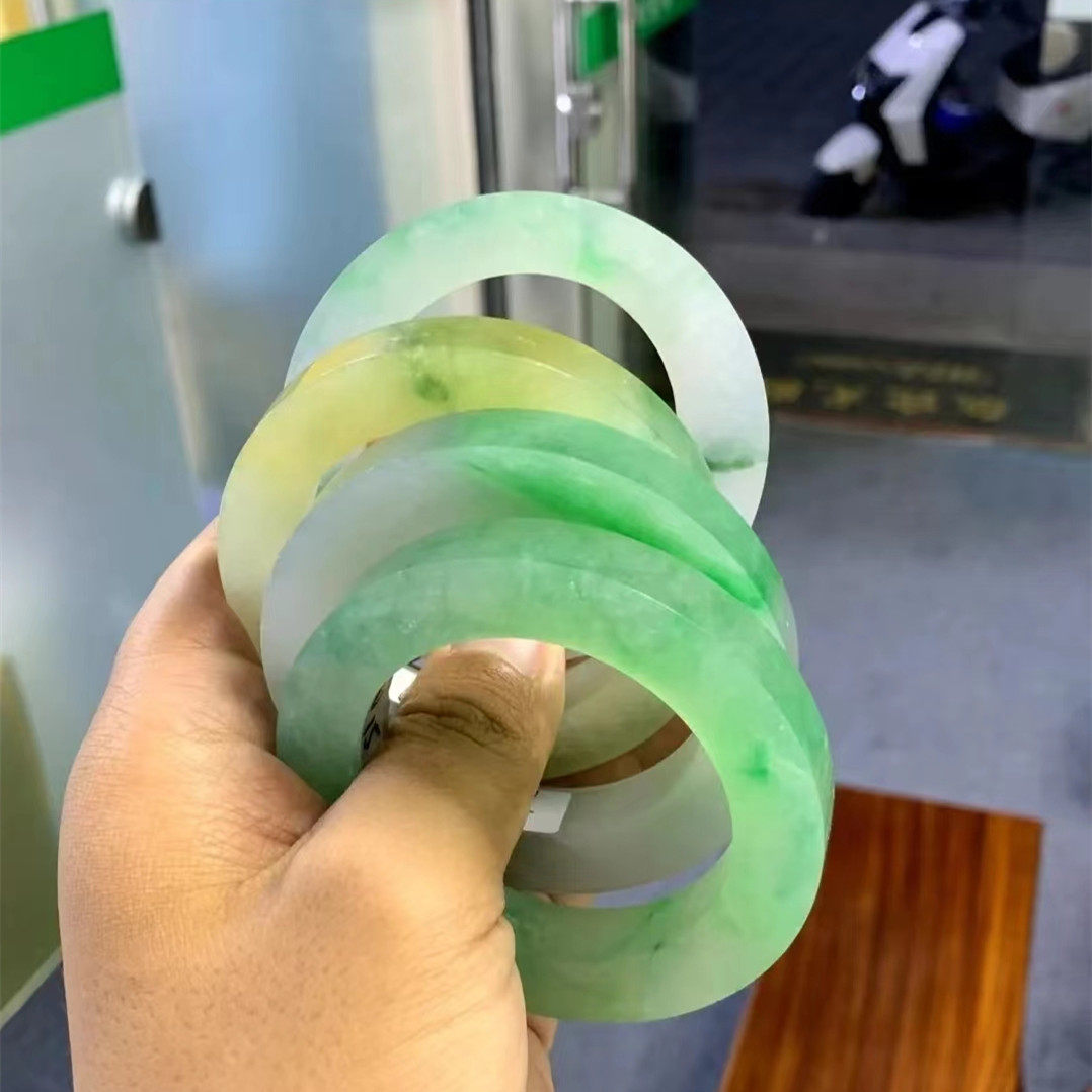 Burmese natural jadeite raw stone jade wool material ice bracelet material semi-clear material Yang green floating flower round jade jade bracelet