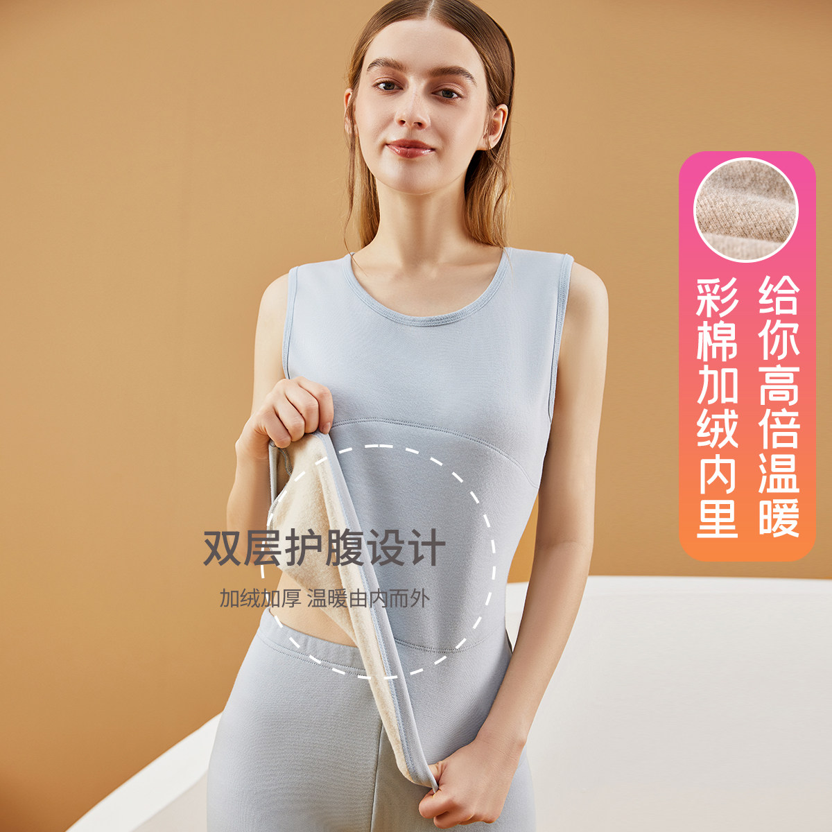 Top melon heating coat ladies thickened double layer of protective stomach vest pure cotton plus suede single blouse with sleeveless vest
