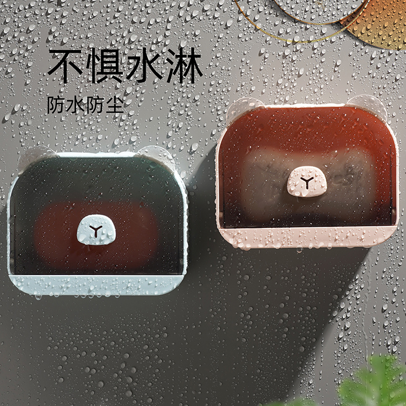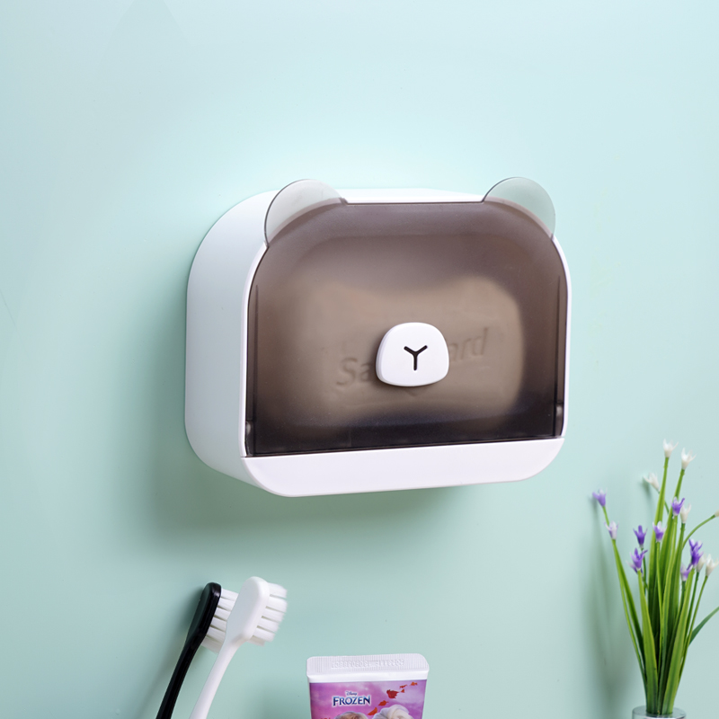 Small Bear Cartoon Style Soap Case Soap Case Wall-mounted Leachate Perforated Shelf Suction Cups Suction Cups Soap Case Bathroom Cute