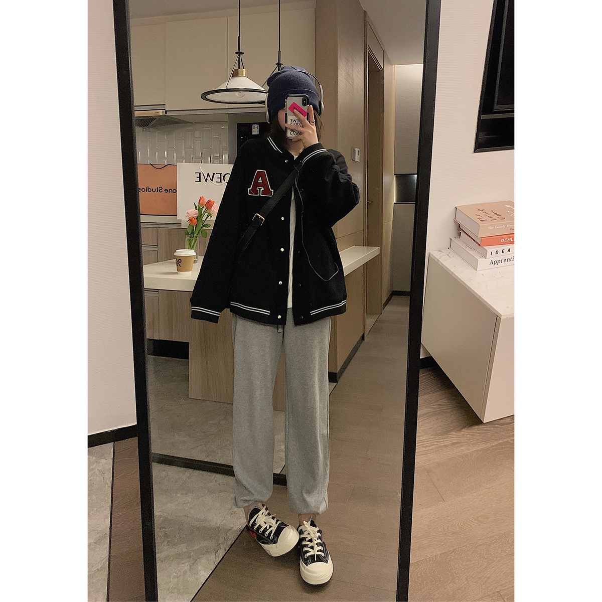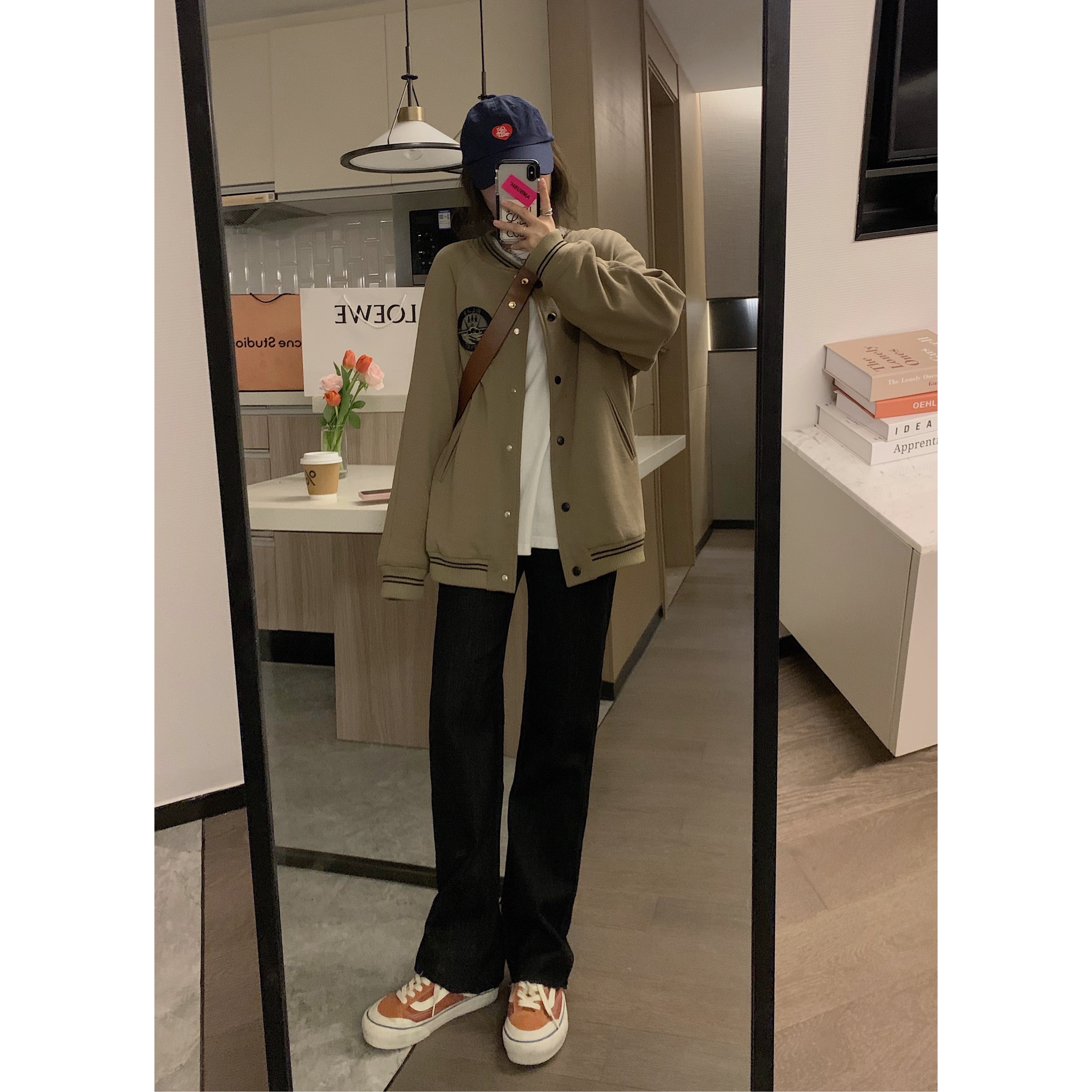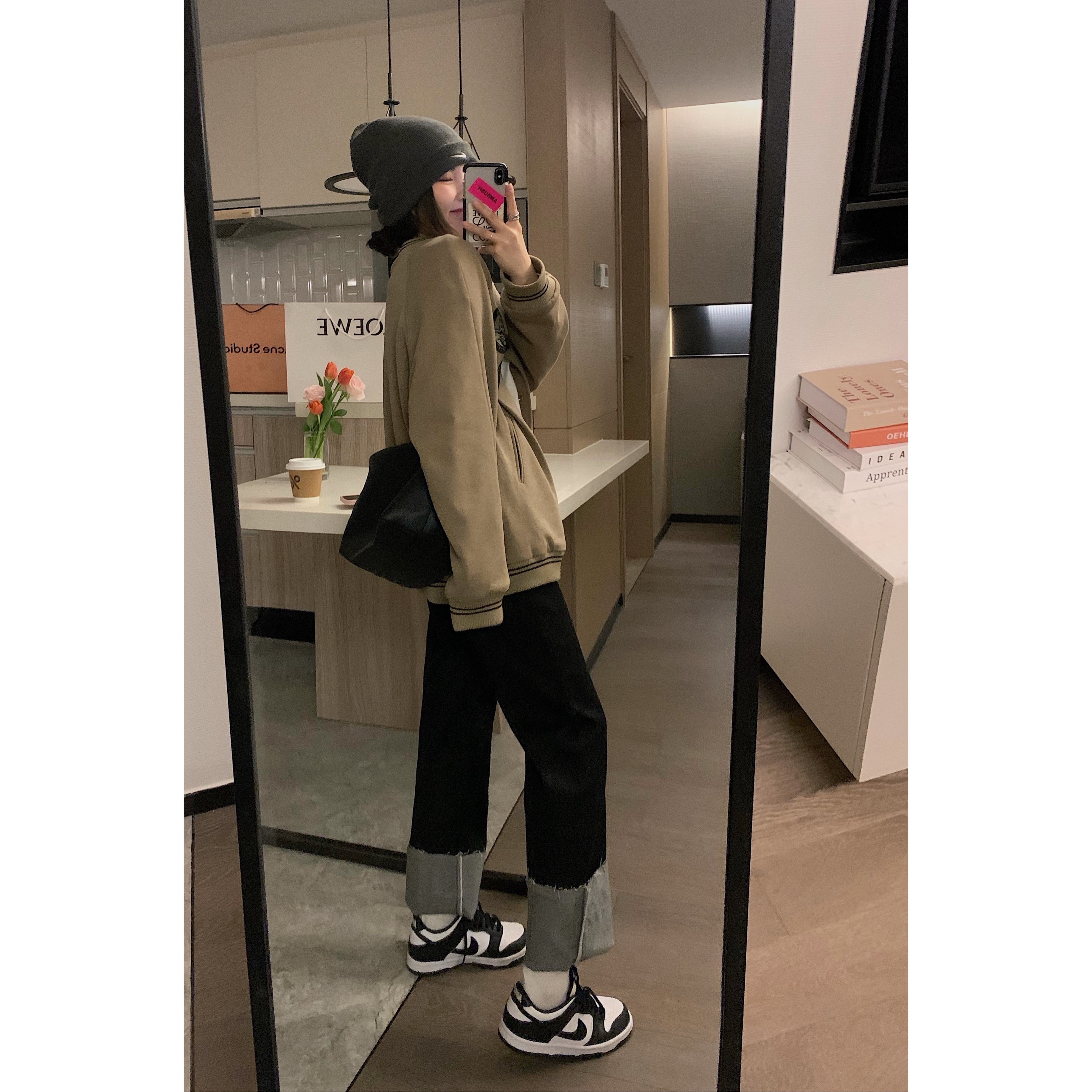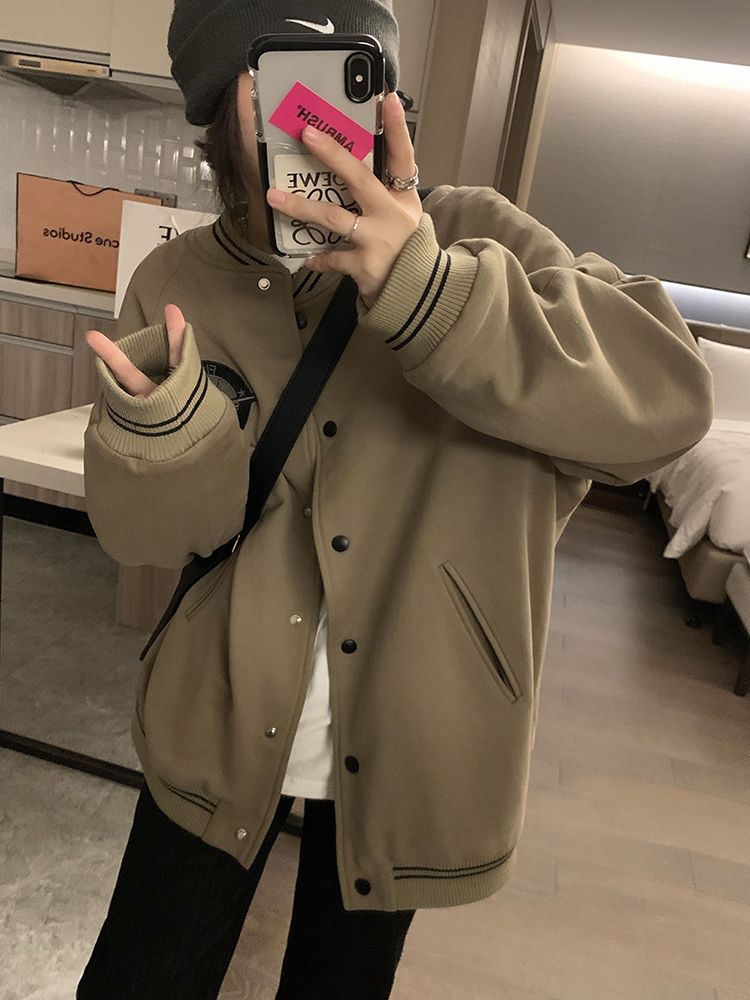 Veee plus velvet American baseball padded jacket, warm and age-reducing, and slim, loose and thickened sweater jacket, female