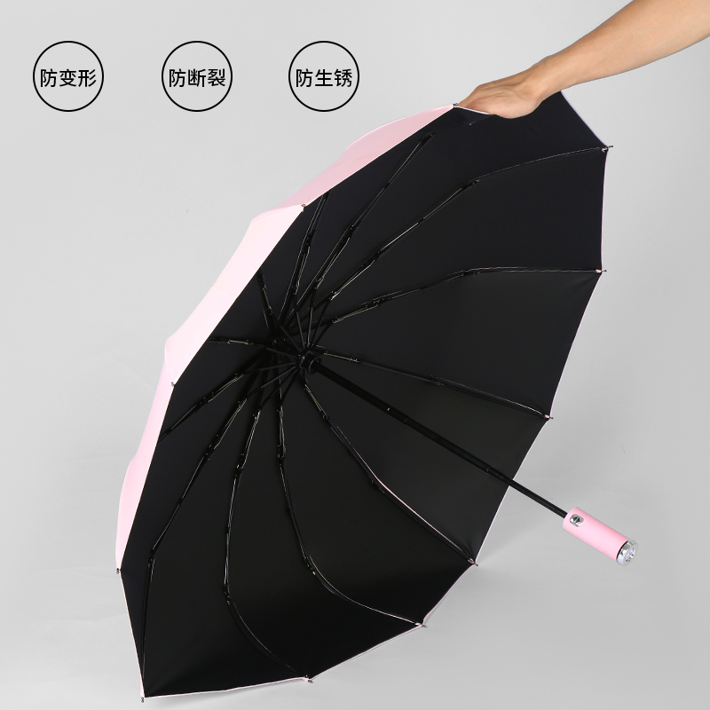 Limited rush purchase (12-bone automatic black plastic double umbrella black) 12-bone automatic double slam cloth umbrella black 12-bone automatic double black plastic umbrella Turning LED lights wine red 12-bone anti