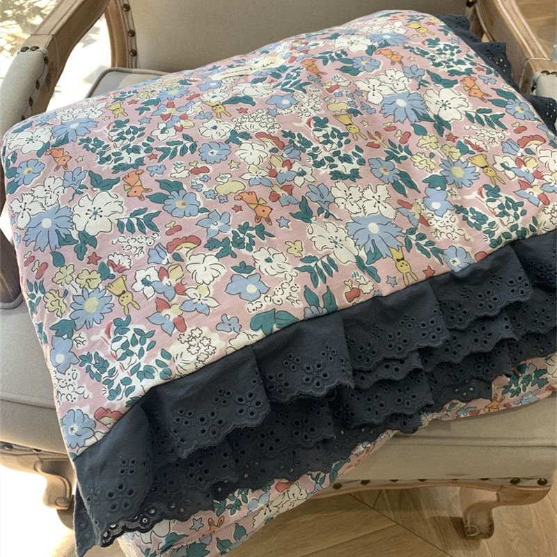 South Korean Little Broken Flowers Ins retro Xia cool quilted by pure cotton Air conditioning by Core All-cotton Double washable Soybean Thin Quilt