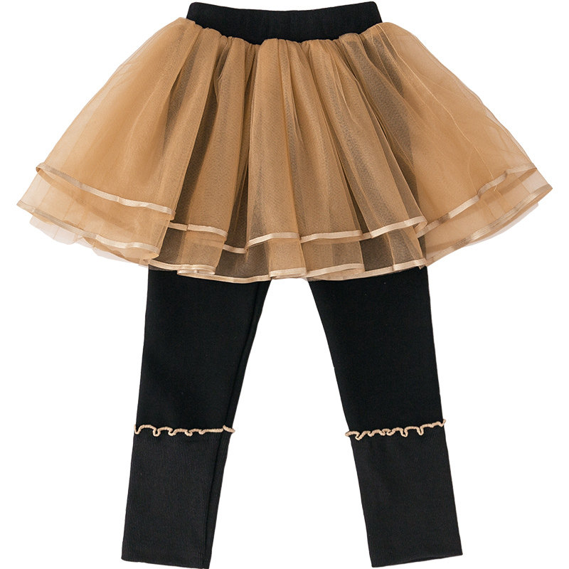 Boat rat girl gush dress pants autumn winter Korean version for children pants fake two mesh yarn black female baby long pants