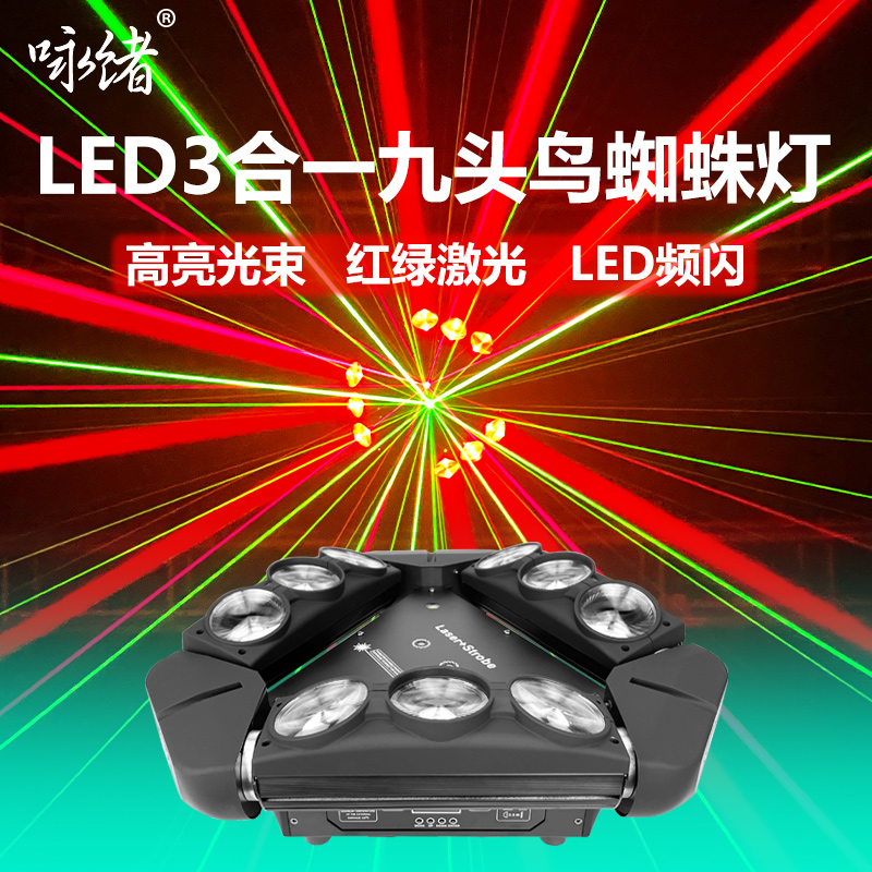 Full color nine-headed bird without laser Three-in-one nine-headed bird Laser strobe stage lighting scheme customization