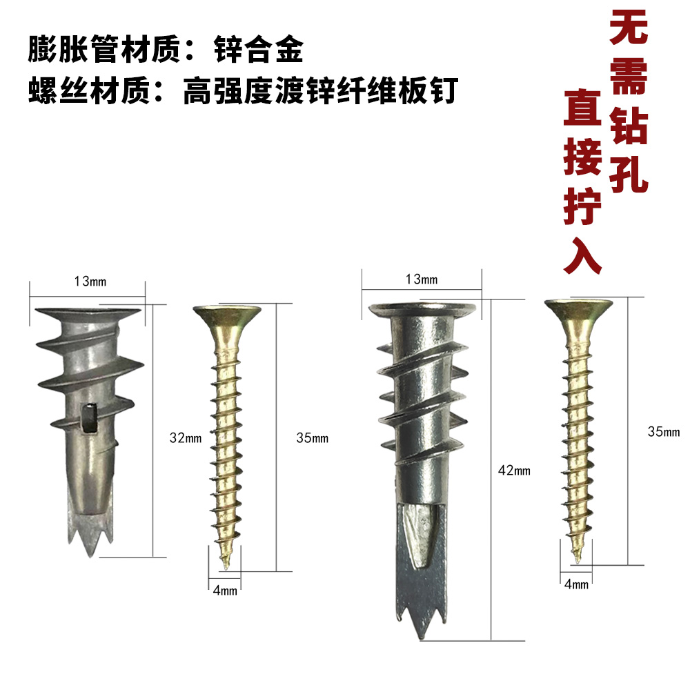 Zinc alloy material without punching screw screw-in plaster plate expansion plug aircraft fast gecko screw lengthening