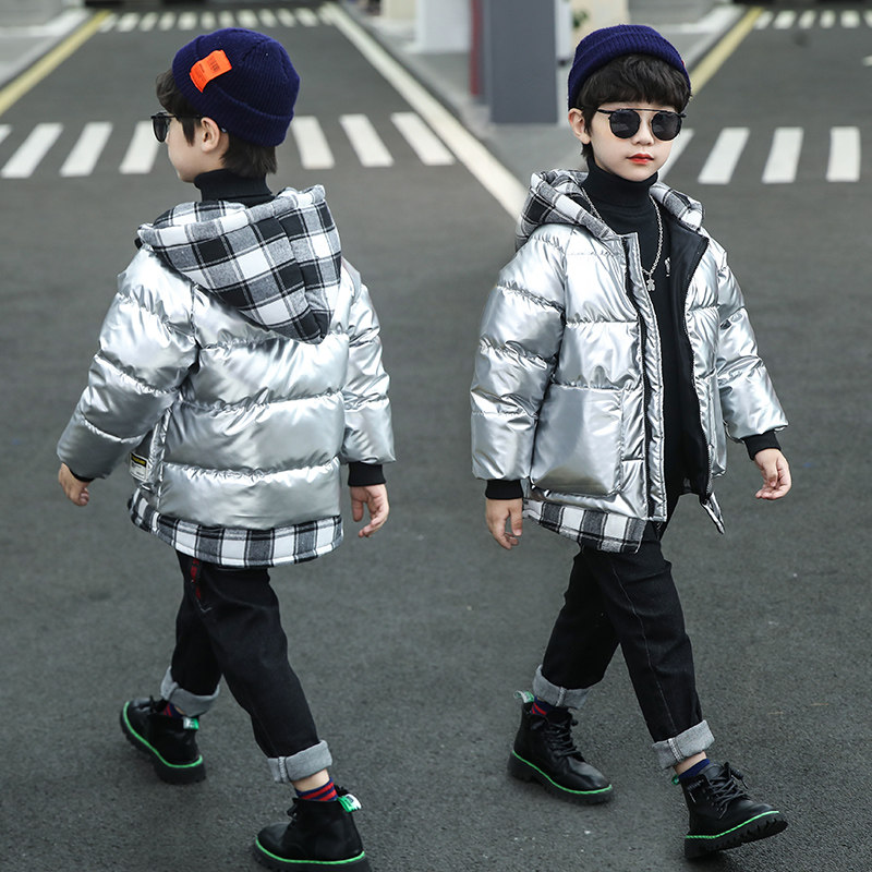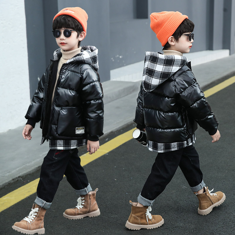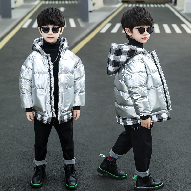 Boys' cotton-padded jacket winter clothes 2021 new middle and big children's down padded jacket Korean version short children's thickened hooded jacket tide