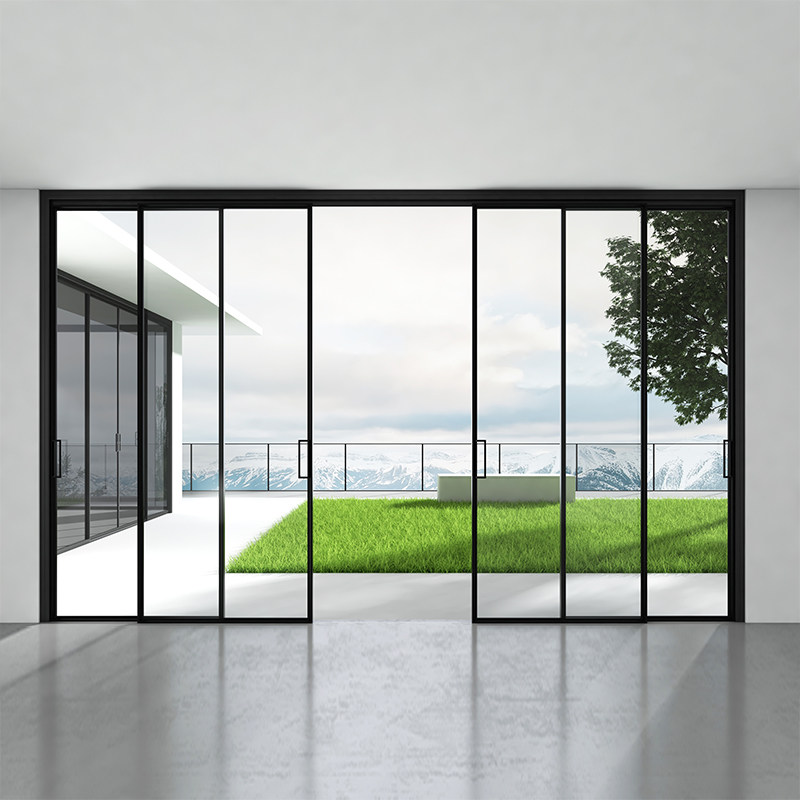 Customized extremely narrow aluminum alloy glass sliding door living room folding door kitchen Changhong hanging rail triple linkage balcony sliding door