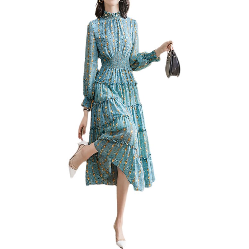 Mapping * Hong Kong light and luxurious to close-up women's clothing 2022 Fashion temperament plaid round collar dress