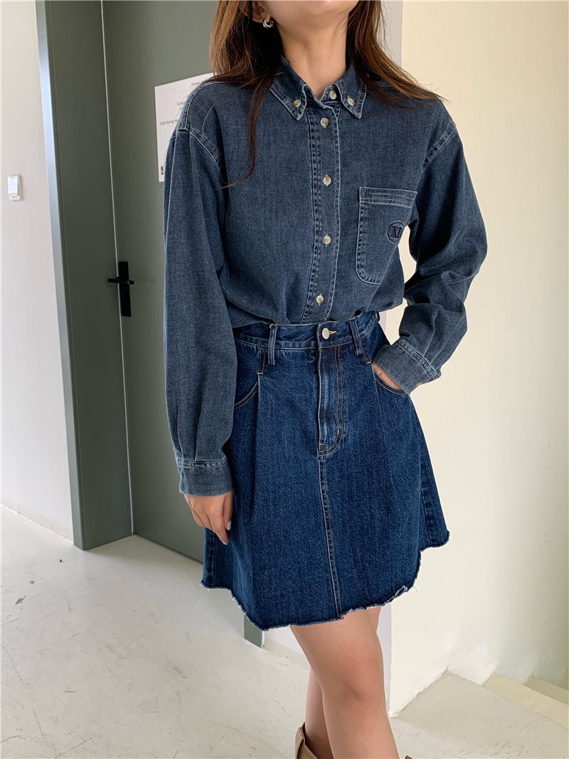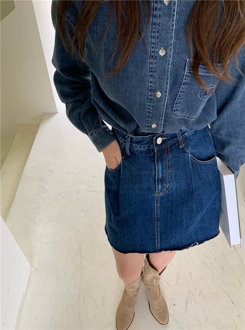 Xiaoxiaola 1937 closed eyes, feedback style A-line cotton denim pleated skirt, very good match